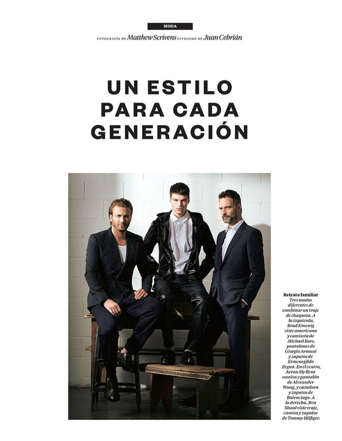 Generation Style-Photographer Matthew Scrivens and stylist Juan Cebrian collaborate for a story in El Pais Semanal. Rounding up designs from Prada, Saint Laurent and more, Cebrian shows a keen eye for matching relevant styles with the ideal age demographic. Posing for laid-back portraits in the fashions are models Arran Sly, Ben Shaul, Brad Kroenig, Conrad Bromfield, Jacob Morton, Sasha Knezebic and Travis Smith.