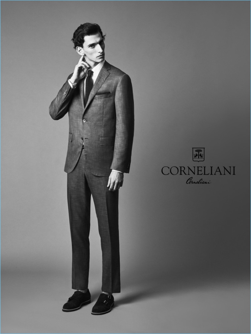 Corneliani taps model Thibaud Charon as the star of its spring-summer 2017 campaign. Photographer Johan Sandberg captures strong images for the striking advertisement. Front and center, Thibaud models a wardrobe styled by Jerome Andre. Balancing Corneliani’s sartorial penchant with a casual attitude, Thibaud’s wardrobe perfectly reflects the refined modern man.