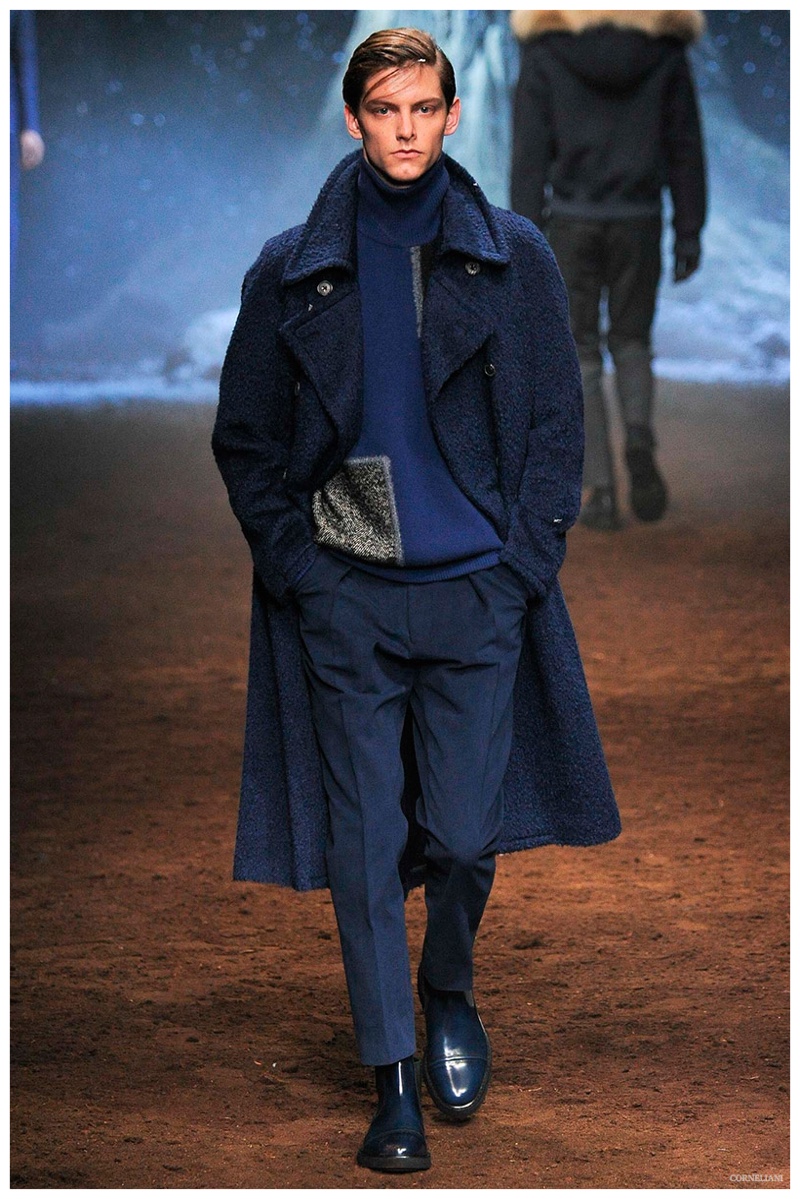 Taking aim at clothes fit for a prince, Sergio Corneliani delivered timeless menswear pieces for the label’s fall-winter 2015 collection. Confident, noble, tailored and precise, ensembles were executed with a careful grace as an all-compassing wardrobe of knitwear, jackets, coats and suiting were brought together with luxe textiles and an autumnal color scheme. From marled finishes and charcoal herringbone to essential checks, Corneliani delivered a staple of sharp men’s ensembles that would do well by any modern prince.