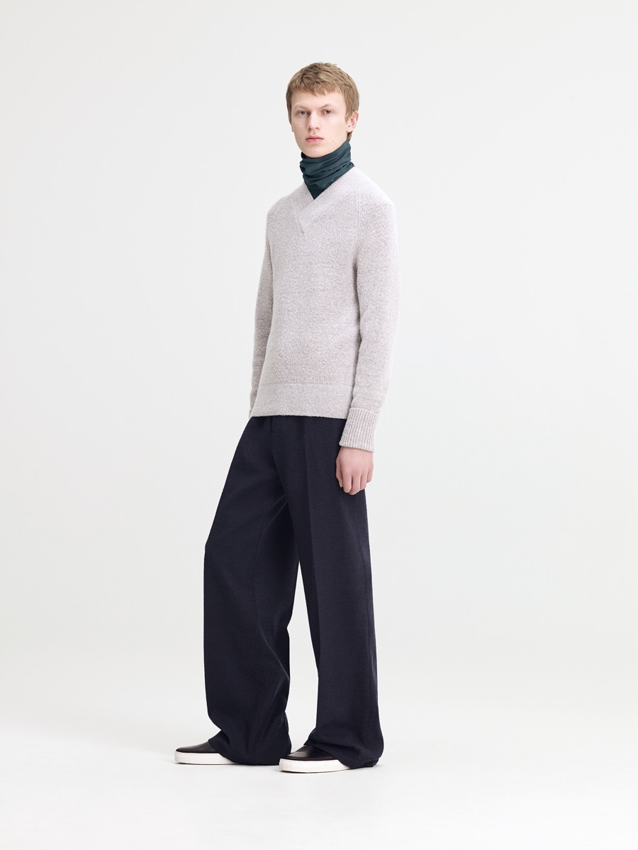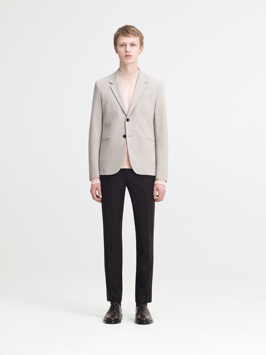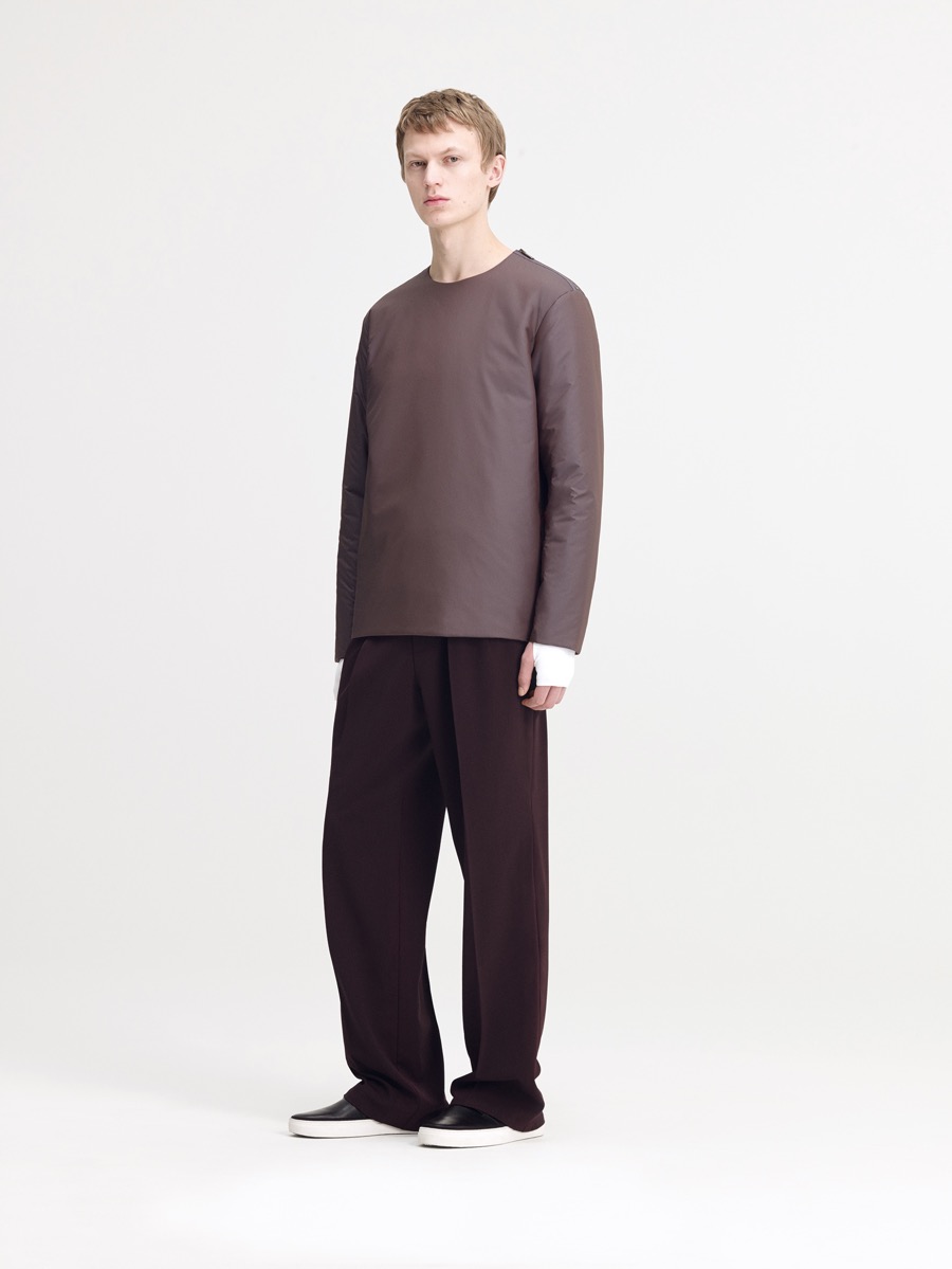 COS explores modular styles with performance gear serving as muse for fashions finished with straps, zips and eyelets. Slim tailoring includes cropped pleated trousers and jackets that embrace a cocoon wrap silhouette. Made from textured wool, the collection’s jackets and coats are paired with fitted turtlenecks and simple pullovers. The range is completed with padded fingerless gloves and for footwear–brown oxford shoes and raw-edge leather sneakers.