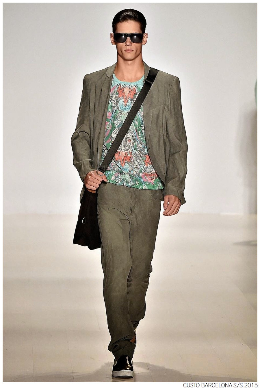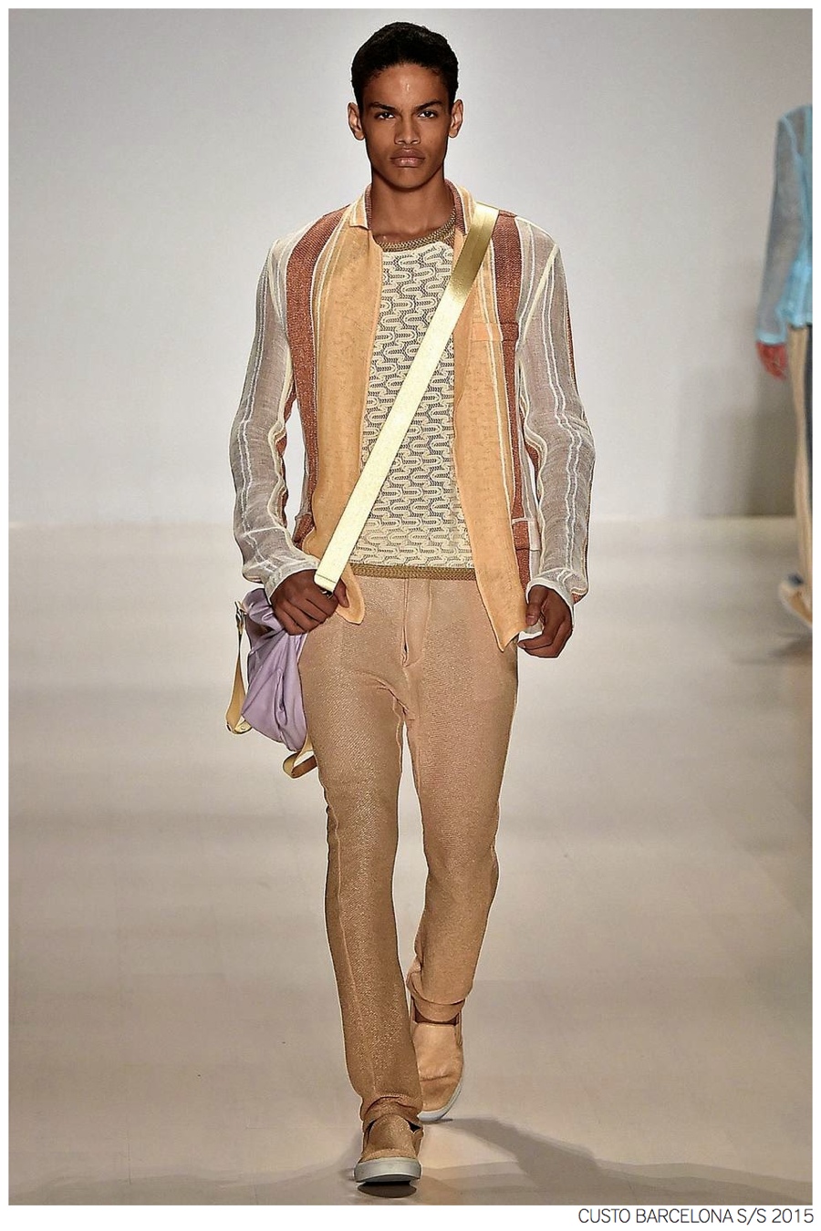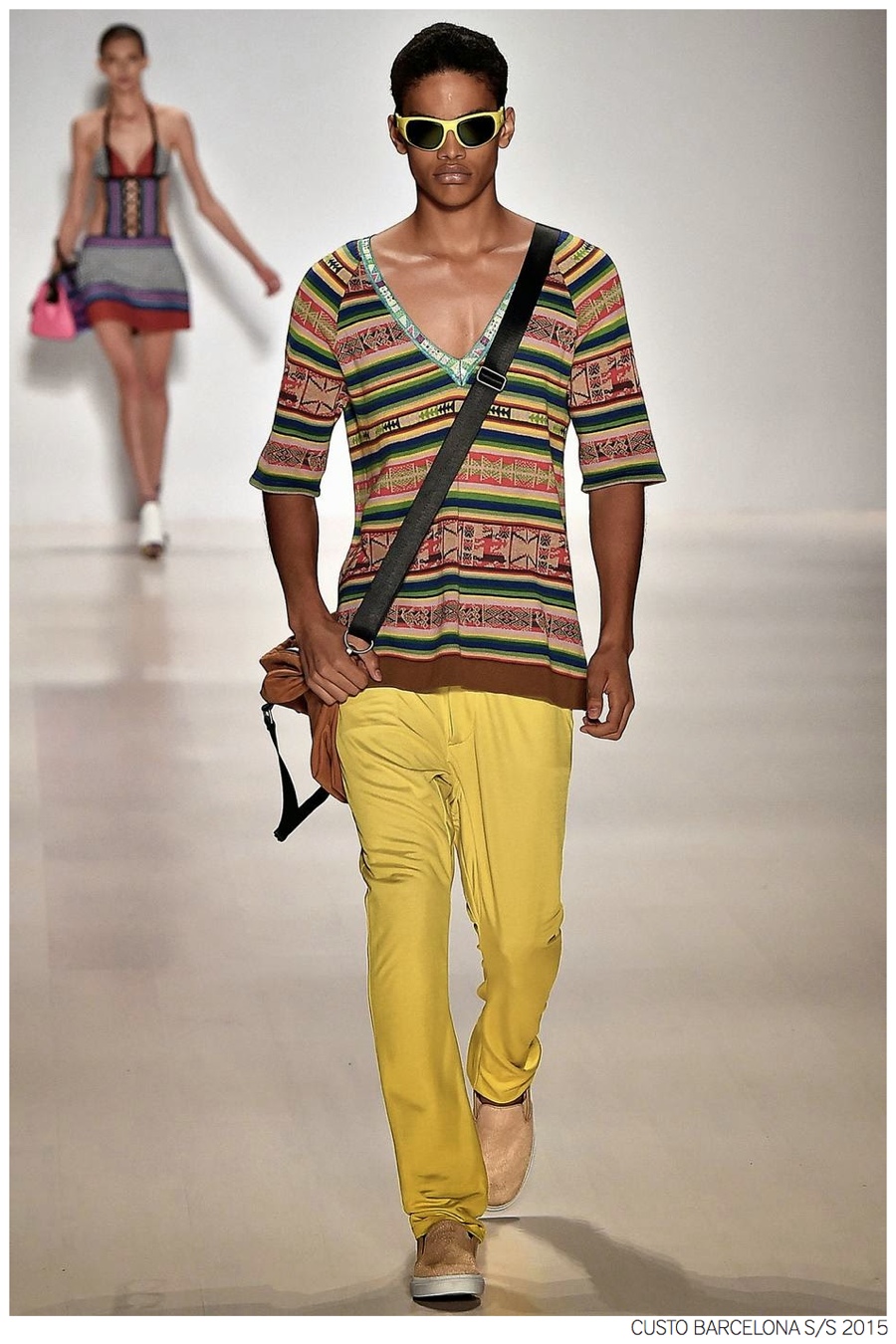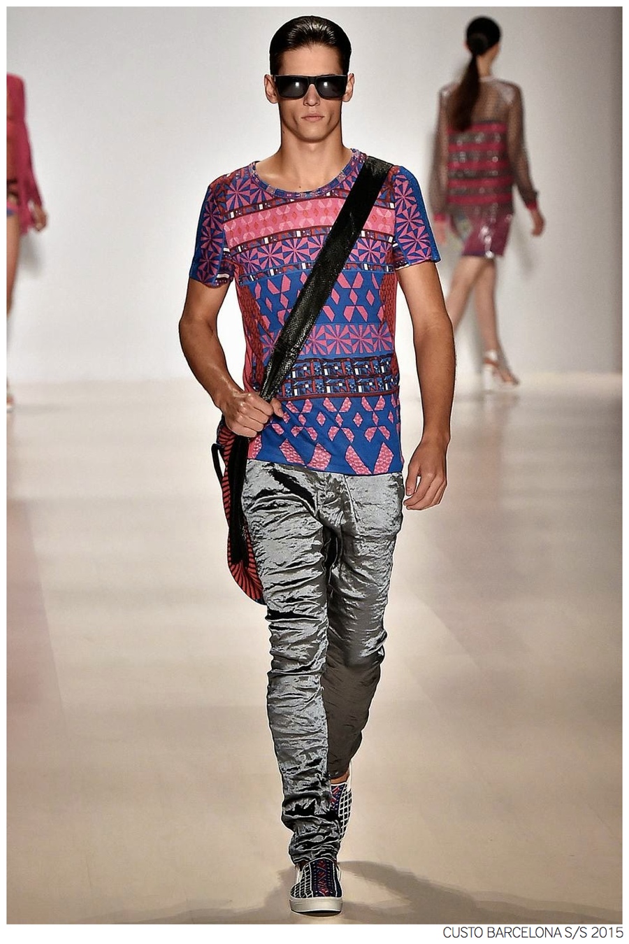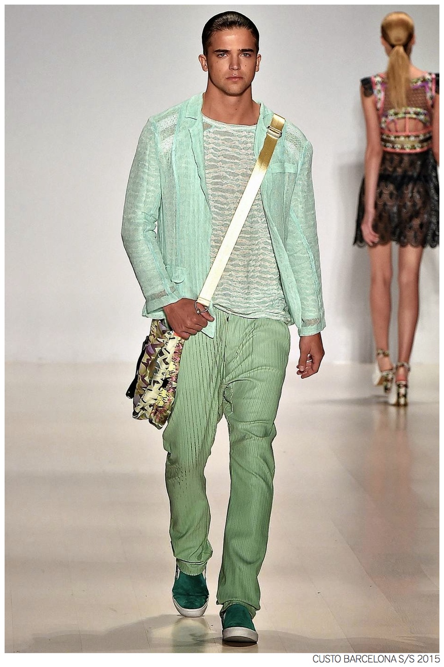Known for embracing a soft, more demure side to menswear, but nevertheless lively, Custo Barcelona hit the catwalk with a new spring collection during New York Fashion Week. Svelte and groomed to a t, models walked the runway with semi-lean lines and a wardrobe exploding with color. Printed, graphic t-shirts were matched with board shorts. Meanwhile, sheer materials held a certain allure, draped and layered. On the other hand, jackets carried the lightness and ease of button-downs and were the perfect companion to tanks and slouchy shorts.