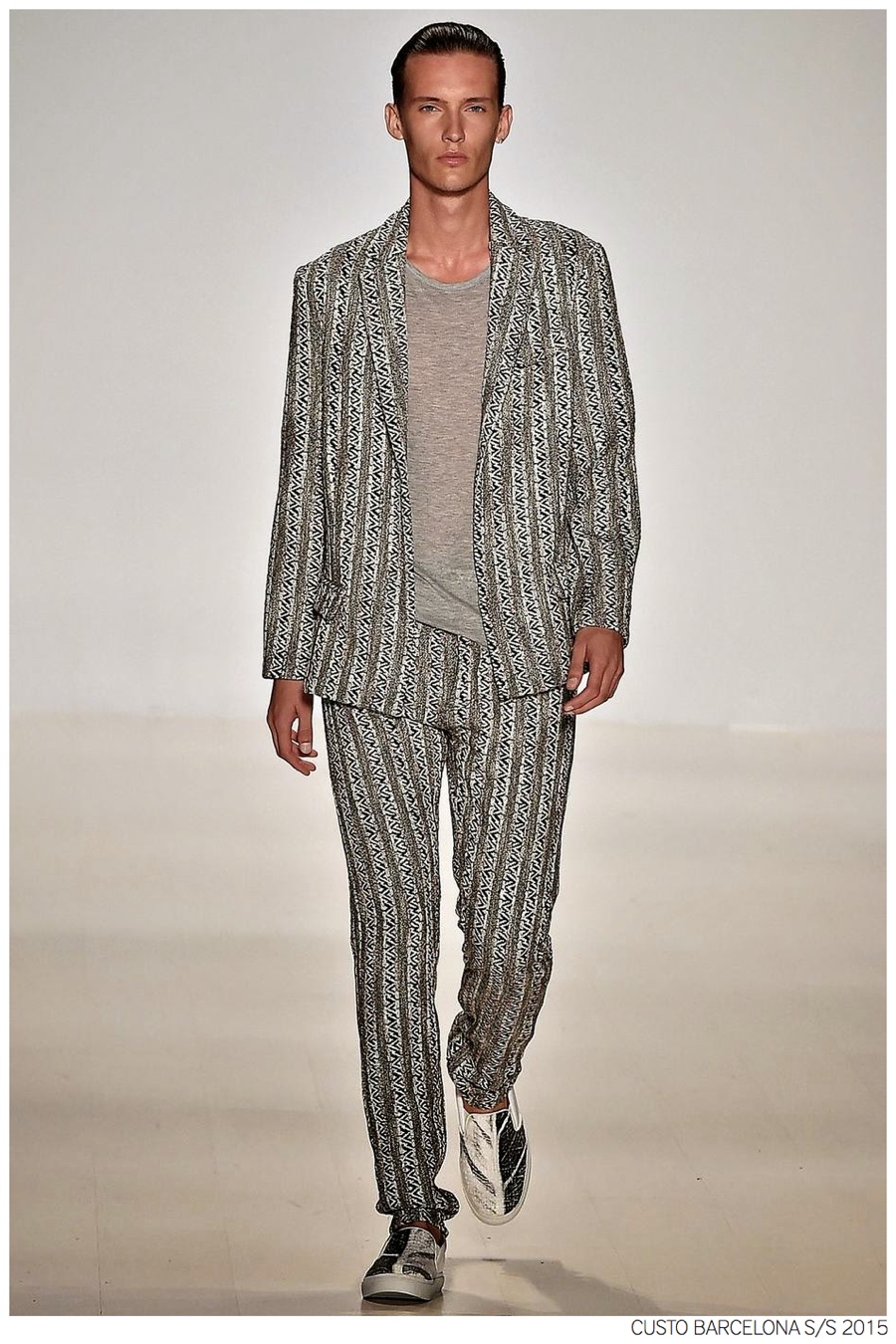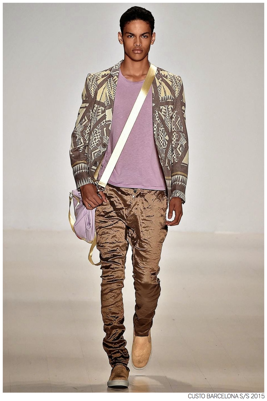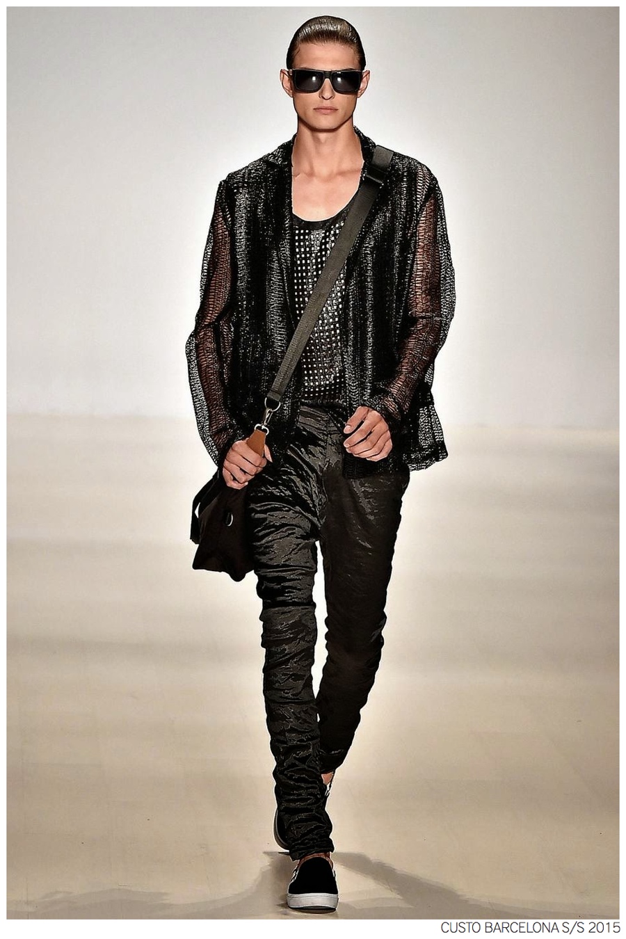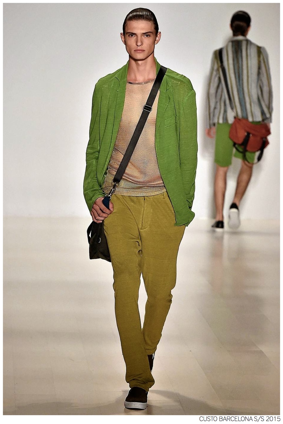 Known for embracing a soft, more demure side to menswear, but nevertheless lively, Custo Barcelona hit the catwalk with a new spring collection during New York Fashion Week. Svelte and groomed to a t, models walked the runway with semi-lean lines and a wardrobe exploding with color. Printed, graphic t-shirts were matched with board shorts. Meanwhile, sheer materials held a certain allure, draped and layered. On the other hand, jackets carried the lightness and ease of button-downs and were the perfect companion to tanks and slouchy shorts.