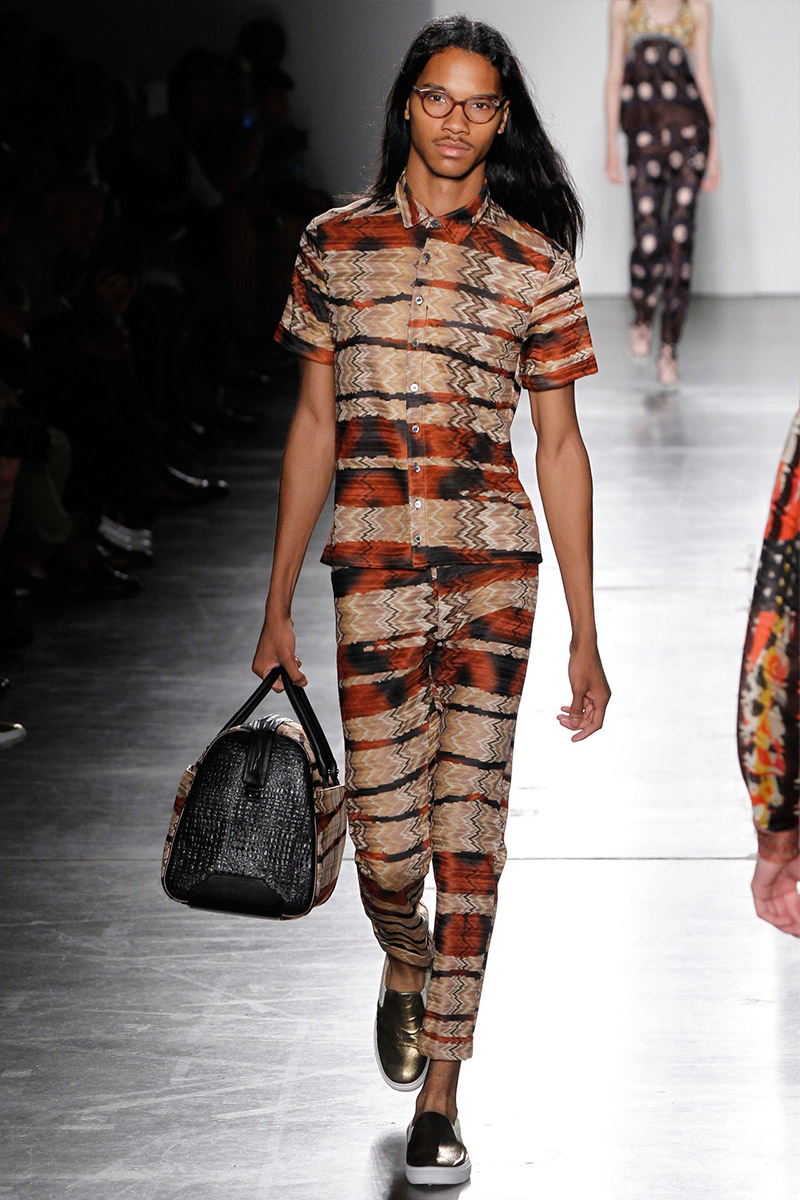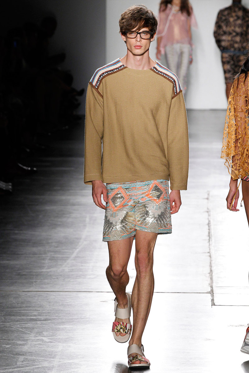 Designer Custo Dalmau unveiled a colorful parade of intricate prints for Custo Barcelona’s spring-summer 2016 collection. Making its debut during New York Fashion Week, the range embodied a playful spirit with a blending of statement pieces that made a strong impact. From bold colors to graphic prints, relaxed proportions made a bohemian play featuring cotton shorts, sheer tops, decorated blazers and more.