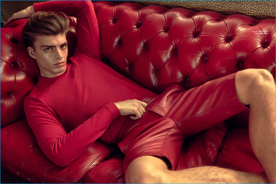 Daan van der Deen is red hot in an Our Legacy sweater with Wan Hung leather shorts.Pin