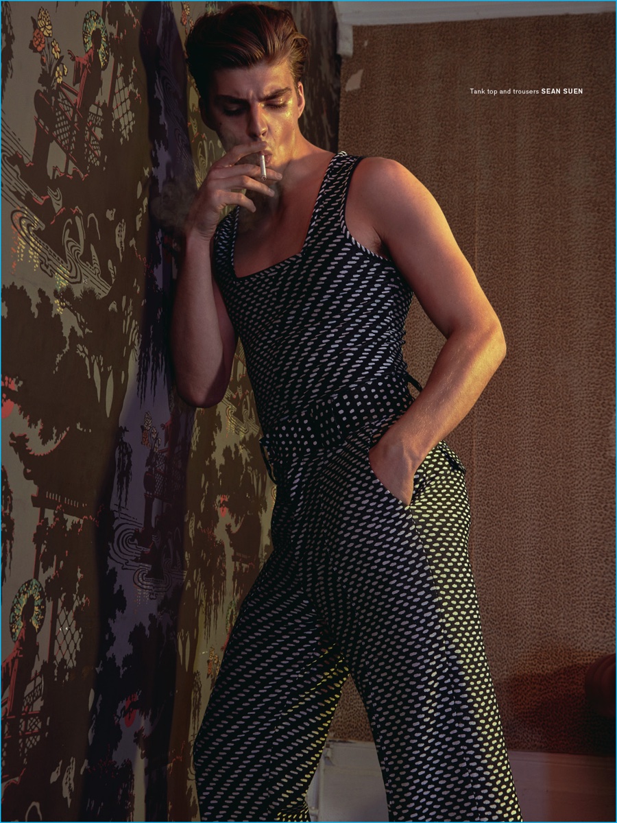 Daan van der Deen covers the most recent issue of Archetype magazine in a Kenzo jumpsuit.