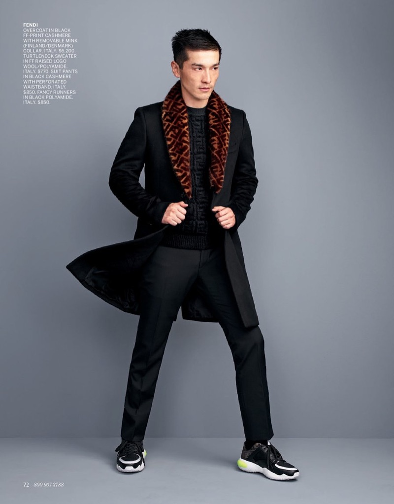 Bergdorf Goodman turns its attention to sharp designer looks for its fall 2019 edition of Goodman’s Guide. Commissioned for the season, photographer Jason Kibbler takes to the studio with Daisuke Ueda. The Japanese model impresses in tailored ensembles that capture a variety of aesthetics. Front and center, Daisuke dons everything from an elegant leather coat in brown from Berluti to a modern number in black, courtesy of Bottega Veneta.
