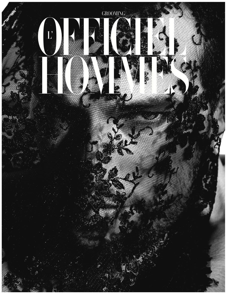 Dan Murphy is captured behind lace for a L’Officiel Hommes Singapore grooming cover.