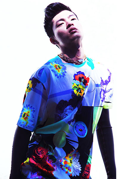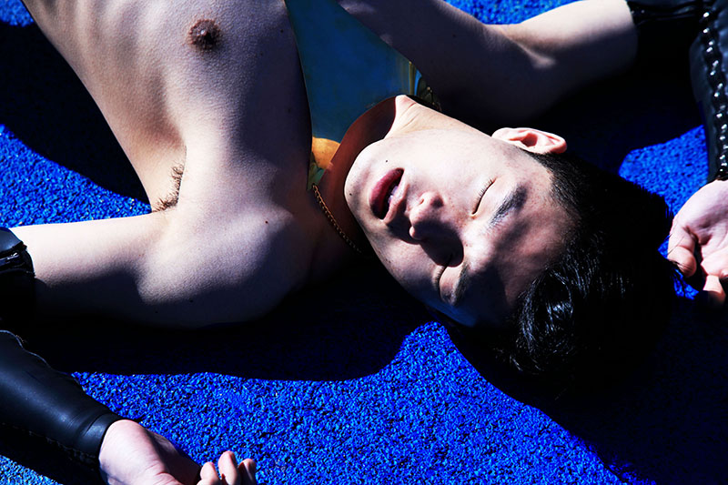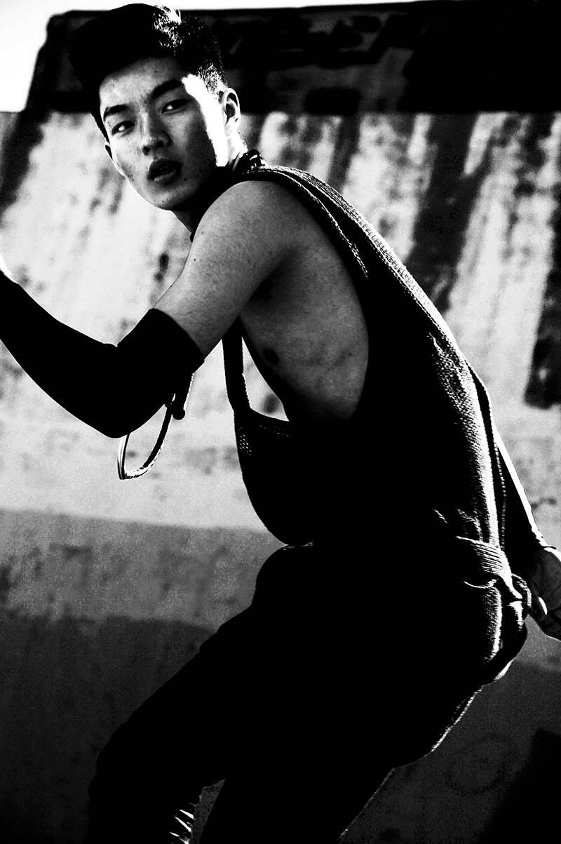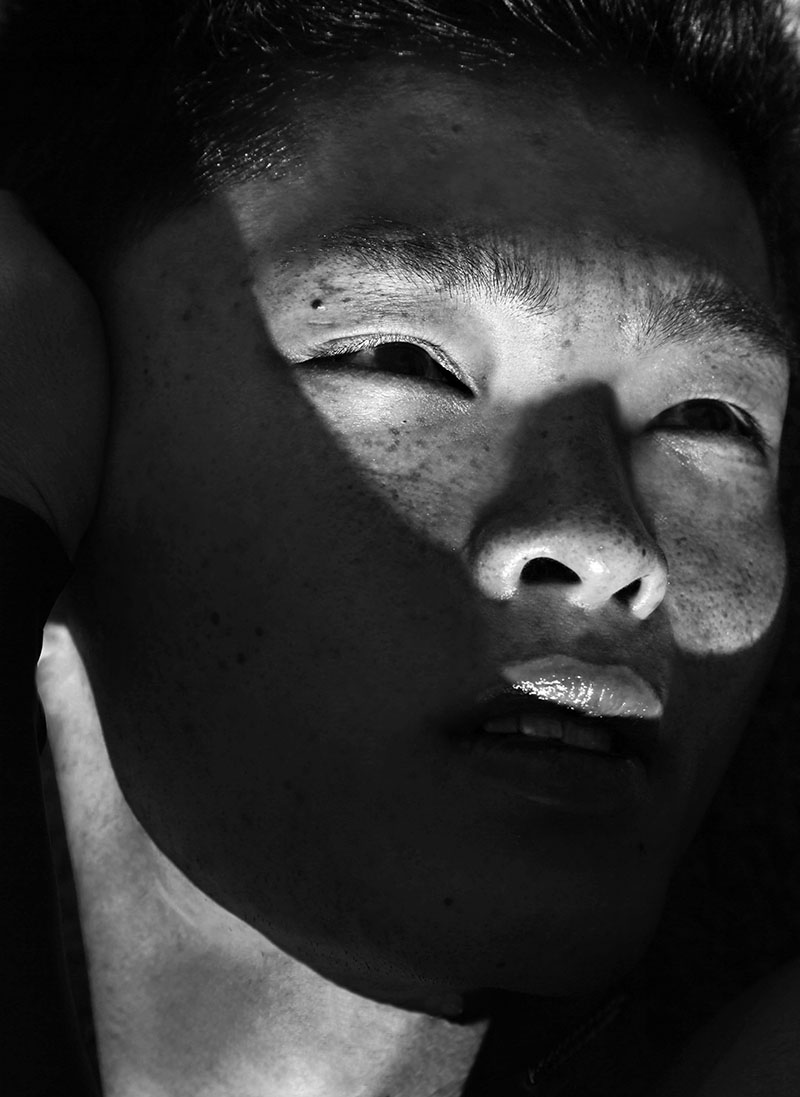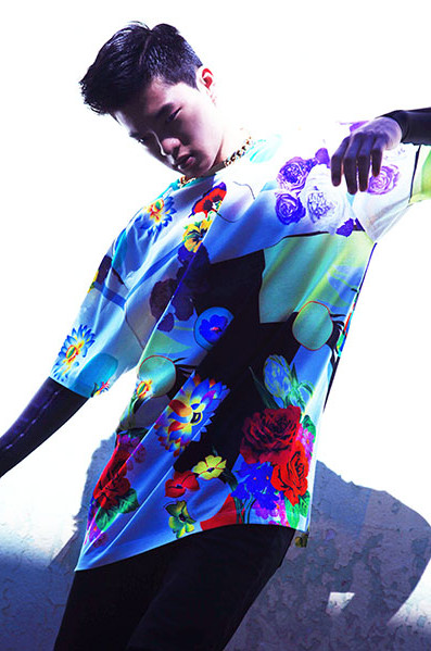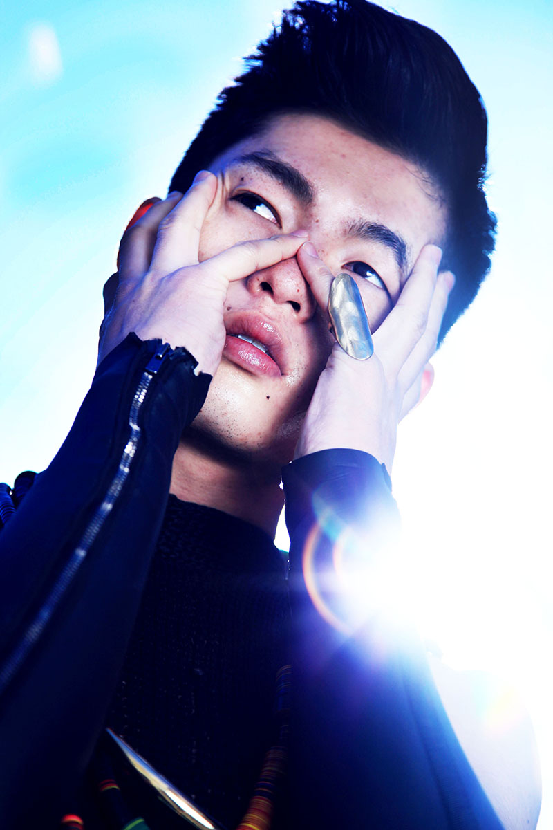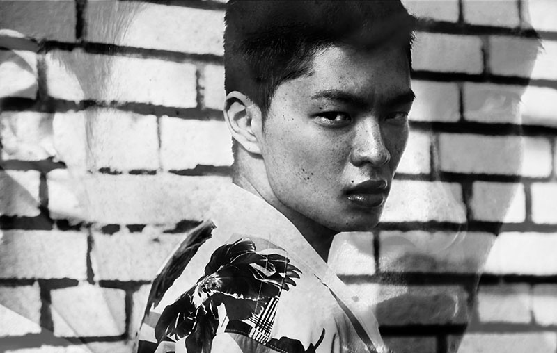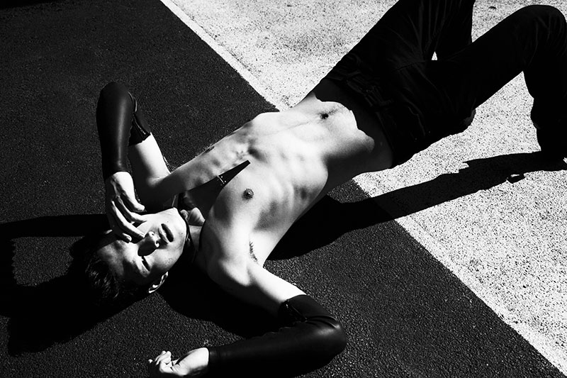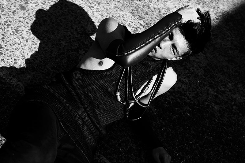 Mixed Inspirations–Model Satoshi Toda stars in an eclectic spread for the latest issue of GODS magazine, appearing before the lens of Dana Scruggs. The New York Model Management talent poses for images that alternate the sophisticated elegance of black & white with the powerful appeal of saturated colors, while stylist Soukéna Roussi dresses him in vibrant fashions, combining blooming floral patterns with bondage-inspired styles and oversized jewels. / Grooming by Lindsey Williams.