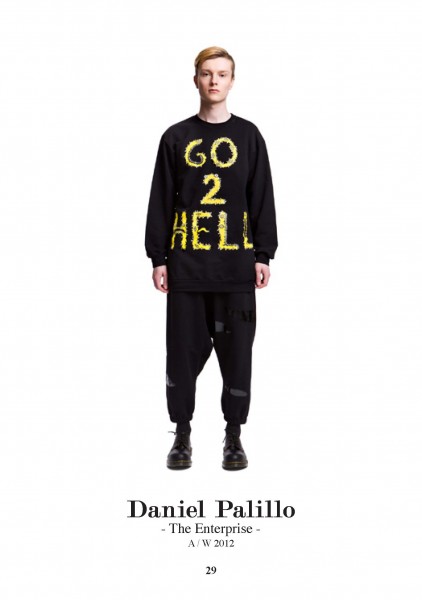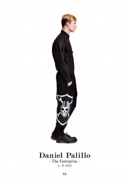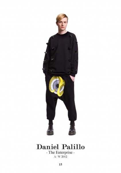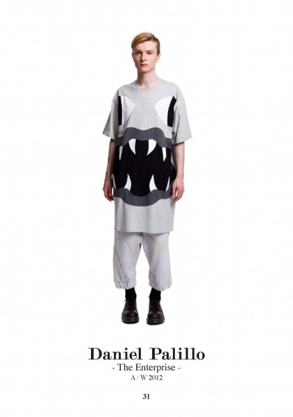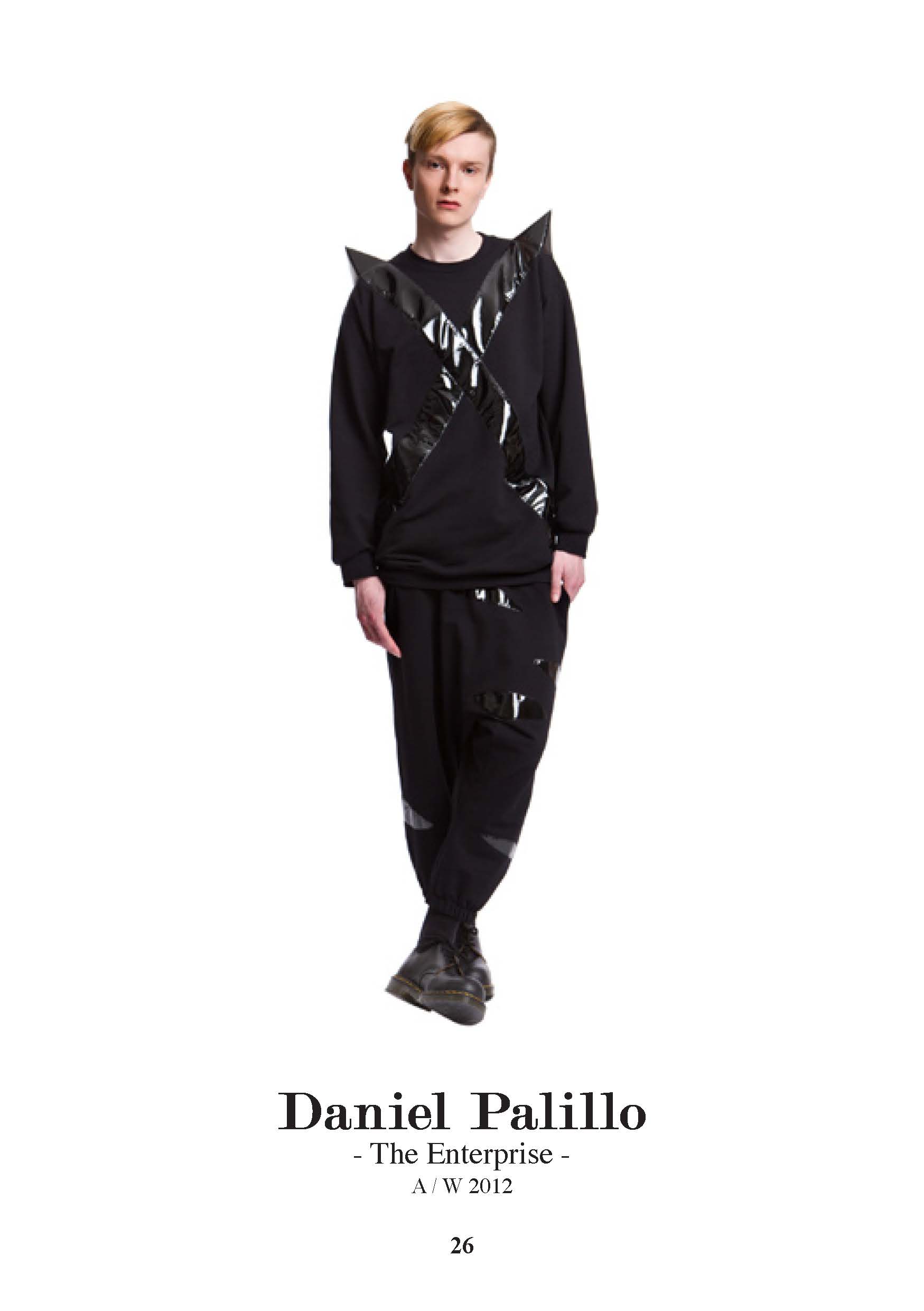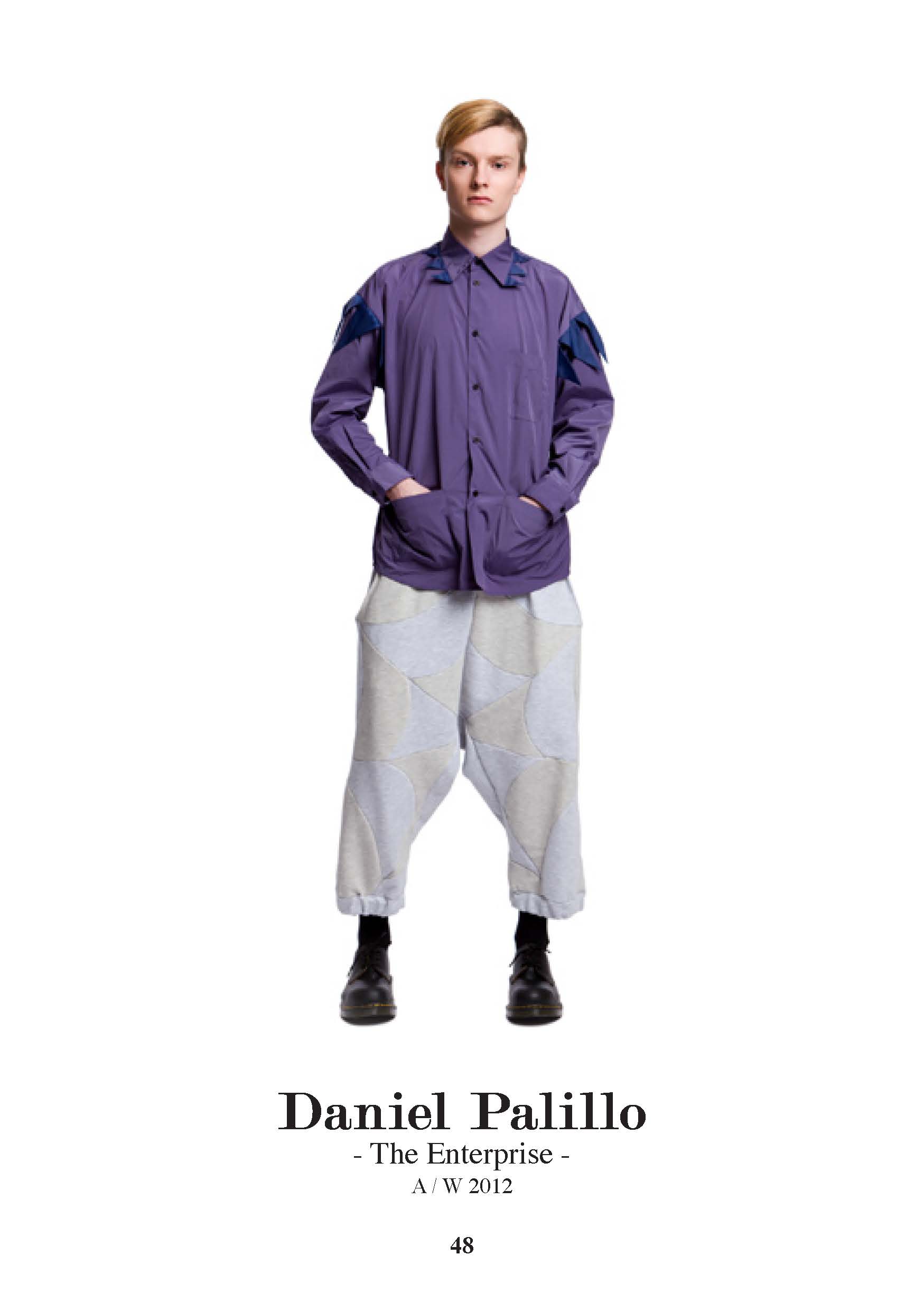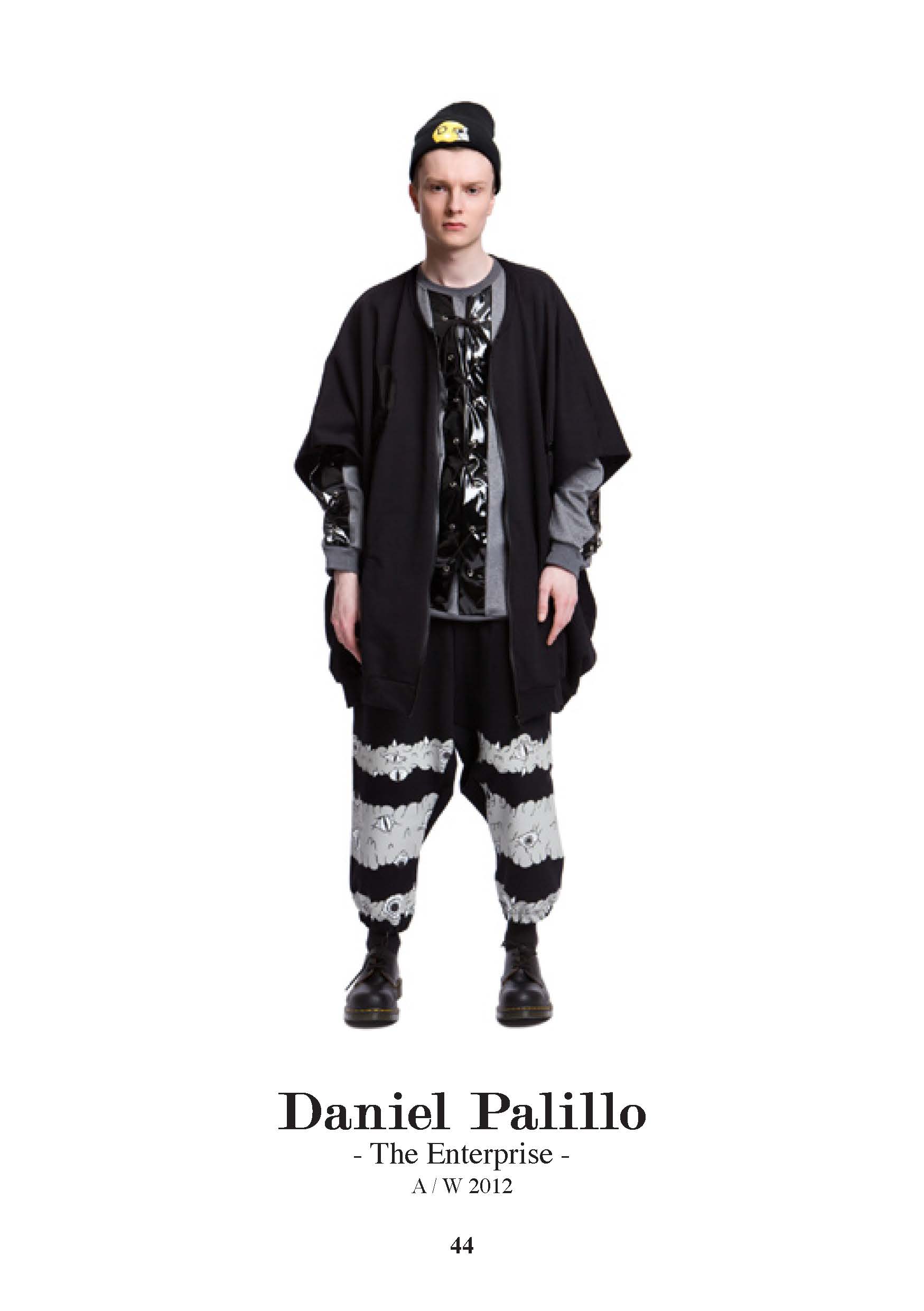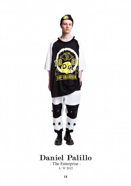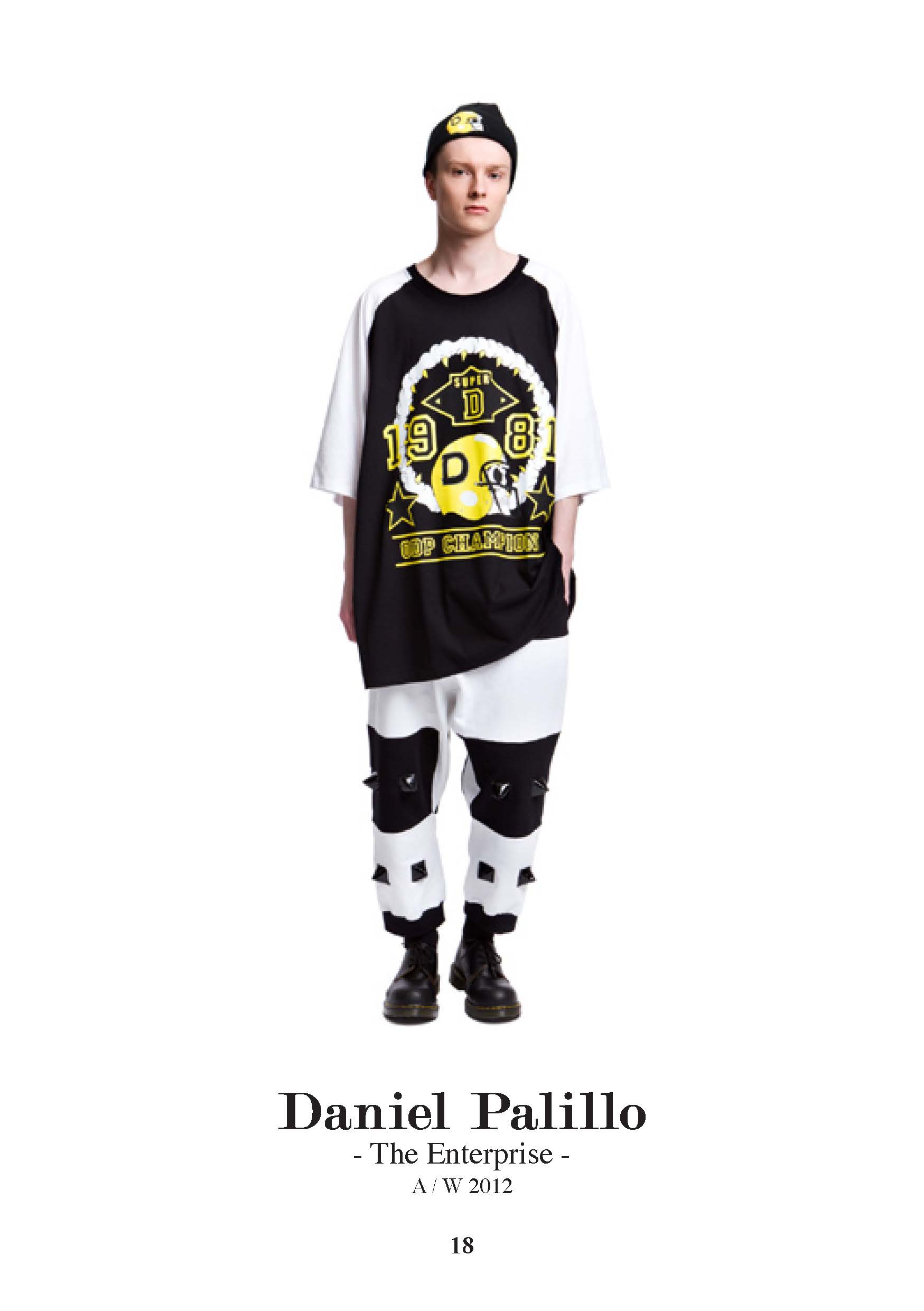 The Enterprise–Daniel Palillo channels his life energies into his latest collection, looking as always to his current fascinations to expand an evolving vision. Incorporating the subject of American sports into this season’s narrative, Palillo finds the perfect companion for his signature take on explosive silhouettes. Mixing in varied references, ranging from the forests of Finland to comic book tales, the collection easily finds its voice with another larger than life cultivation of in your face fashion. Bursting forth with strong graphics and fabrications that include vinyl, the range marries a certain eccentricity to a baggy take on streetwear.