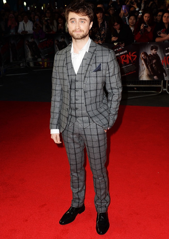 PinHaving a check moment, Daniel Radcliffe wore a three-piece suit from Topman to the London premiere of ‘Horns’ on October 20th.