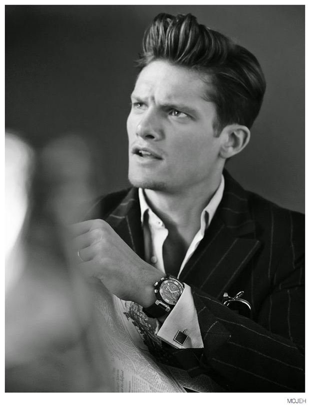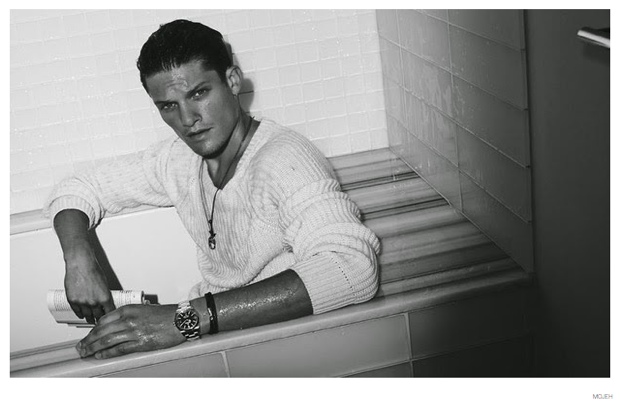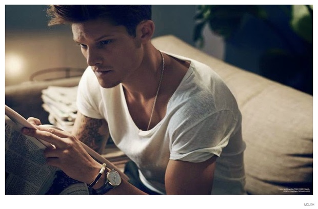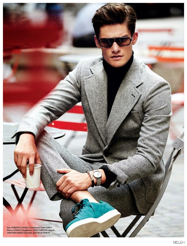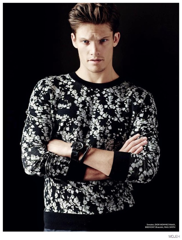 All About Danny-Gracing the cover of the fourth issue of MOJEH magazine, British model Danny Beauchamp is photographed by Riccardo Vimercati. Posing for a mix of images, taken outdoors and about and inside relaxing, Danny is a model citizen of style. From a Roberto Cavalli herringbone suit paired with Adidas sneakers to a floral print sweater from Parisian label Dior Homme, Danny’s wardrobe packs a stylish punch for fall.