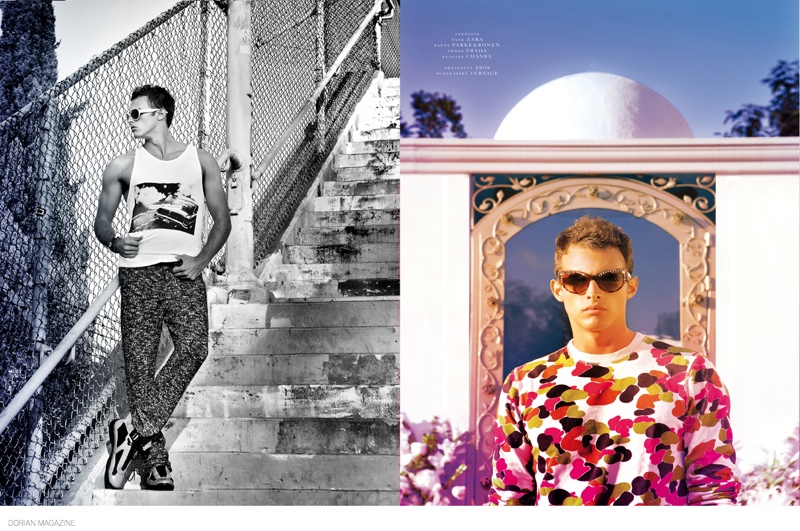 Tijuana Summer-Following his swimwear shoot, photographer Billy Winters reunites with Dorian magazine for a new editorial. Traveling to Tijuana, Mexico, Winters connects with model Dathan Shades. Posing at everyday locales, Dathan is styled by Dean Hall, embracing a laid-back wardrobe, complete with festive summer prints.