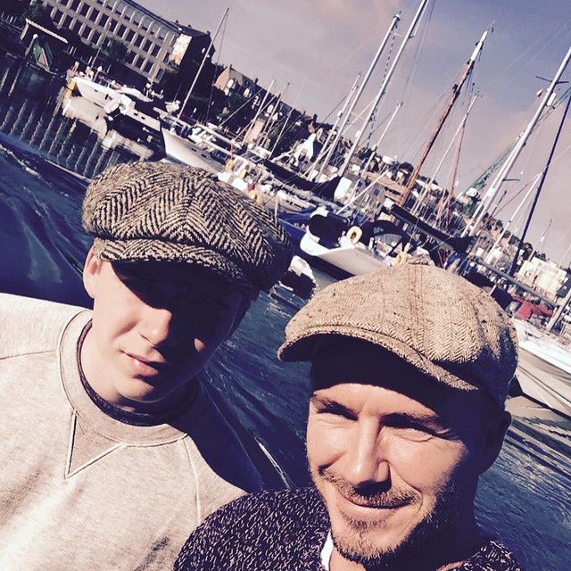 David Beckham + Son Brooklyn Have Newsboy Cap Style Moment