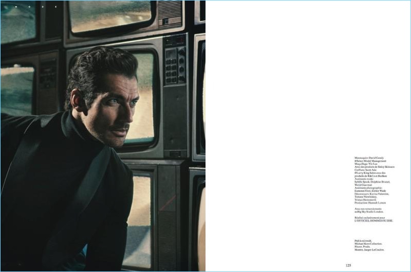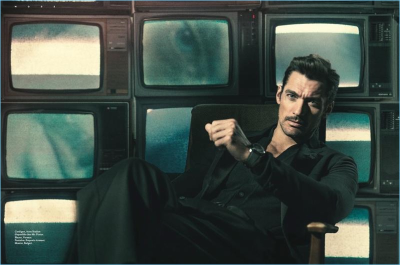 David Gandy lends his signature gaze to L’Officiel Hommes Switzerland. The British model covers the magazine’s spring 2017 issue. Photographer Olivier Yoan embraces film noire inspirations for the outing. Collaborating with stylist Christopher Maul, Yoan captures David in cinematic images. Sporting sartorial styles, David wears brands, which range from Valentino and Tom Ford to Dsquared2.