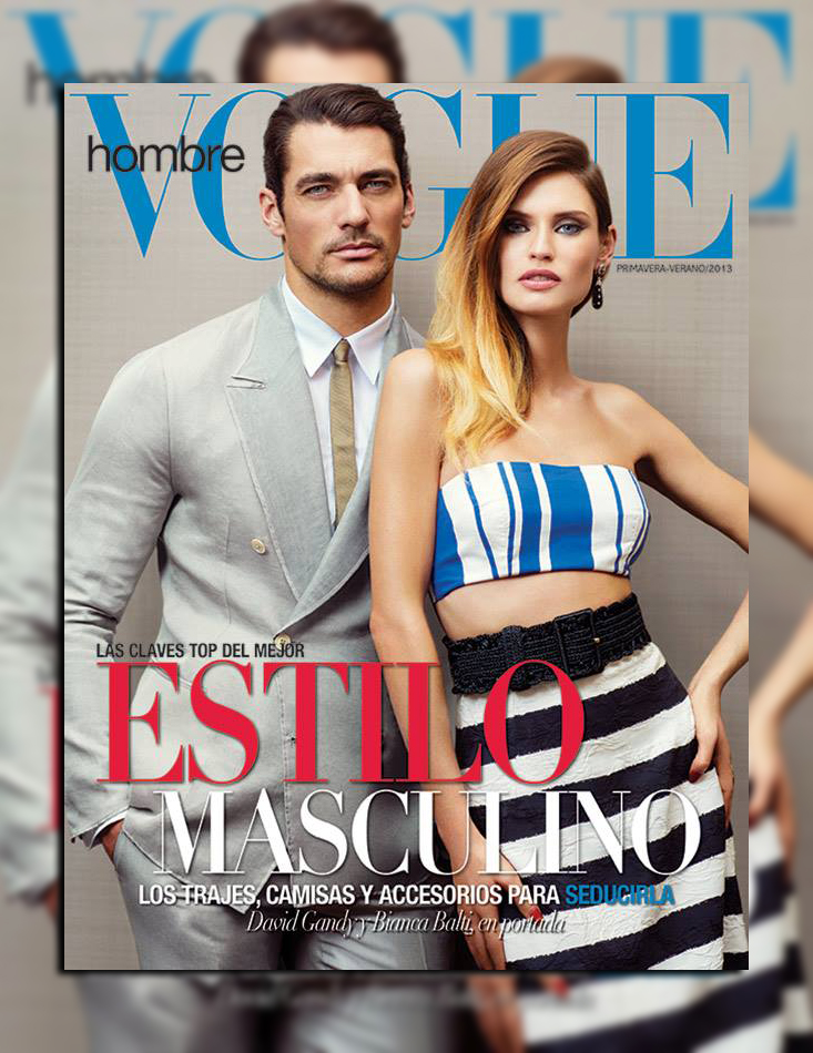 Extra-Ordinary Couple–It seems that British model David Gandy is definitely at ease on the cover of a magazine. The blue-eyed model graces in fact Vogue Hombre’s latest issue, sharing the cover shot with Italian beauty Bianca Balti, Gandy’s female counterpart in the recent Dolce & Gabbana’s Light Blue campaign. Looking handsome as usual in a two-piece icy grey suit, David certainly embodies that kind of impeccable masculine style, which is the subject of the magazine’s spring issue.