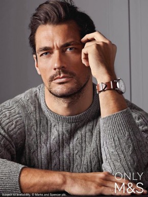 David Gandy for Marks & Spencer-After a campaign visit to San Francisco and his own lineup, which included underwear, British model David Gandy reunites with Marks & Spencer for a new advertisement. Wearing fall classics, David is once again the gentleman, as he settles in for his closeup. Modeling essentials, David’s wardrobe includes tonal windowpane print overcoats, cable-knit sweaters, and trim, tailored three-piece suiting.