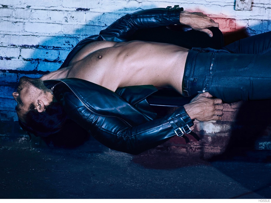 Paging Gandy-Photography and creative duo Hunter & Gatti focus on the theme of gods and goddesses for the fourth issue of their personal project, HGISSUE. Tapping David Gandy as their god, Hunter & Gatti shoot the British model with a dark edge. Outfitted by stylist Christine de Lassus, David sports a sleeveless leather top before going shirtless for the remainder of the story, where he wears a leather jacket and slim-cut denim jeans. / Hair by Paco Garrigues. Makeup by Frank Garret.