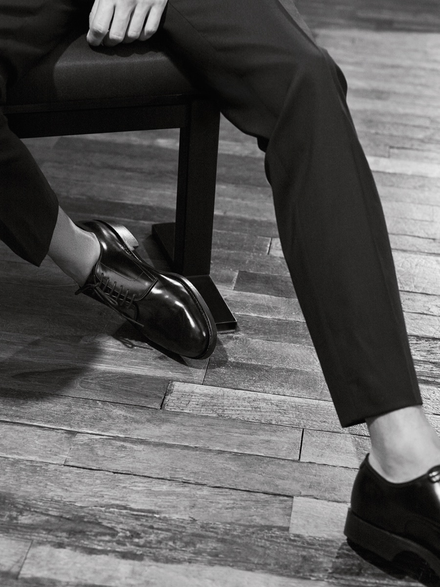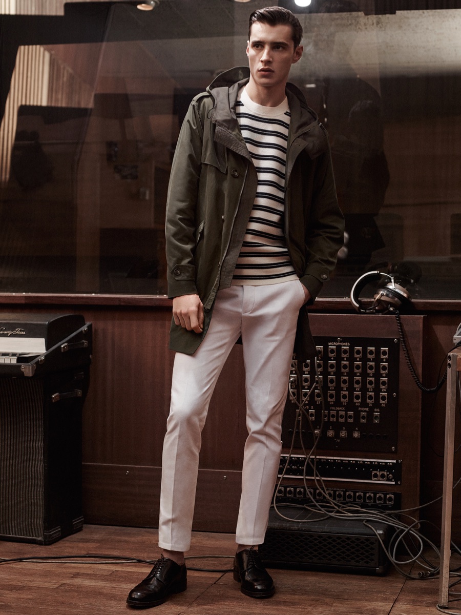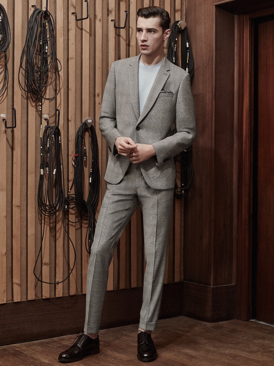 Showcasing De Fursac’s sleek approach to menswear, Adrien is quite the inspiring vision in slim-fit sportswear that includes polo shirts, suede jackets and pleated chinos. The leading French model also shows off the Parisian brand’s expert suiting.