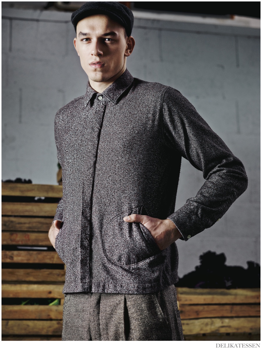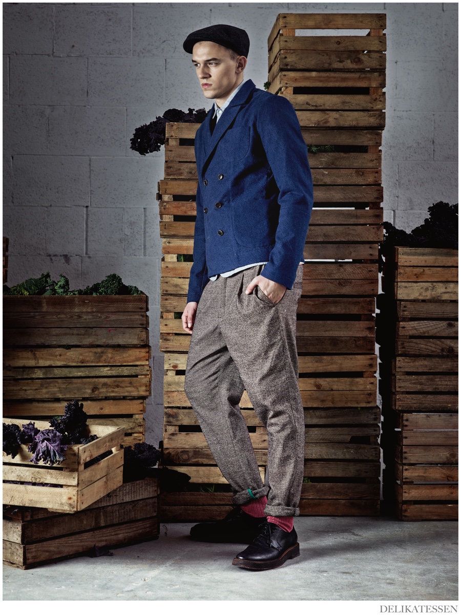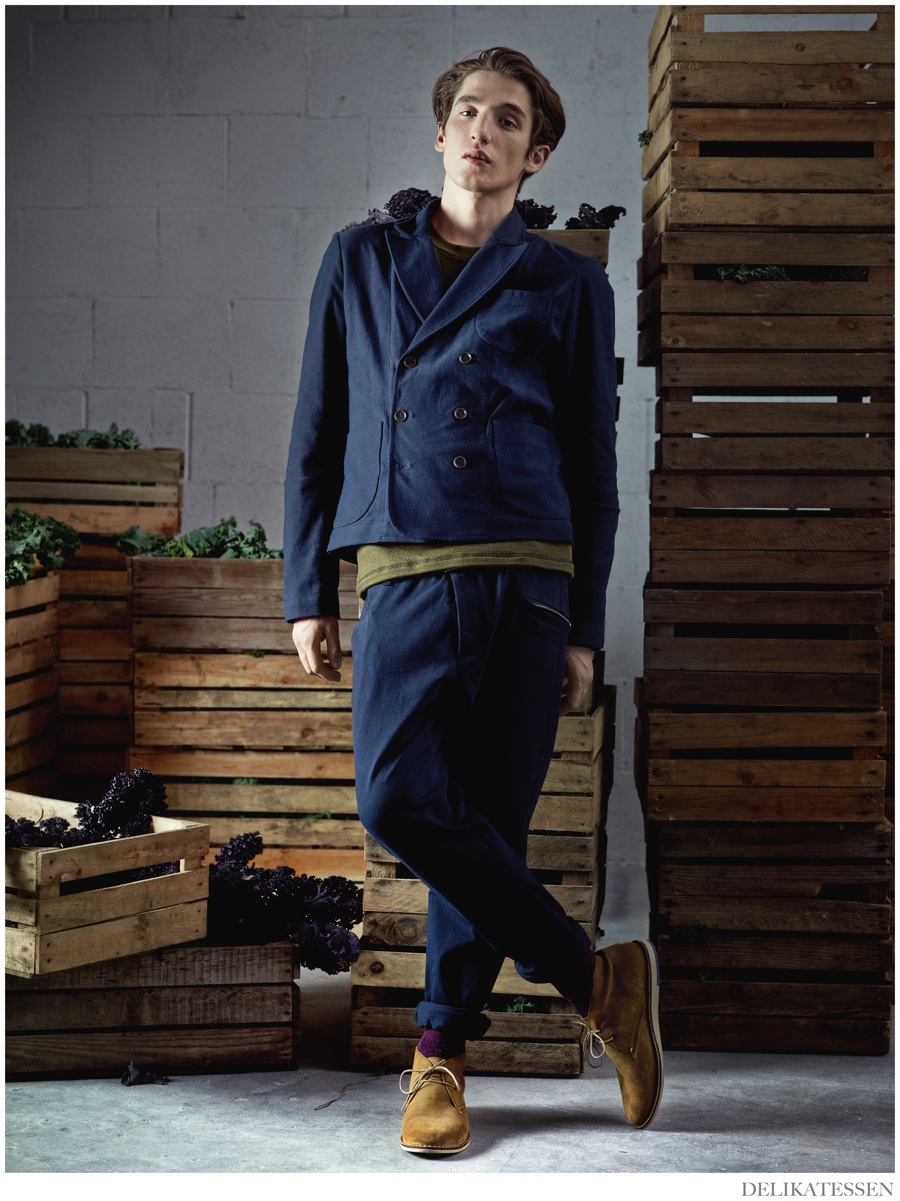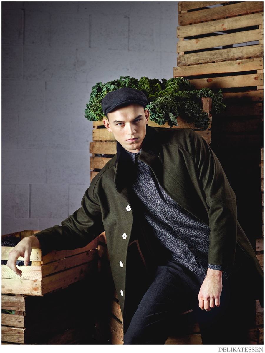 Delikatessen Fall/Winter 2014-Fashion brand Delikatessen delivers an earthy fall outing with its latest collection, which was inspired by harvest season. Delikatessen designers Andre Lisowski and Stephen Hartog add a personal touch to the range, thinking of their own garden in Burgundy, France when dressing many of the collection’s separates in leafy greens that reflect kale. Looking to turn out an honest range, timeless separates come together with relaxed silhouettes for effortless looks made from cottons, wools, silks, vintage chambrays and more.