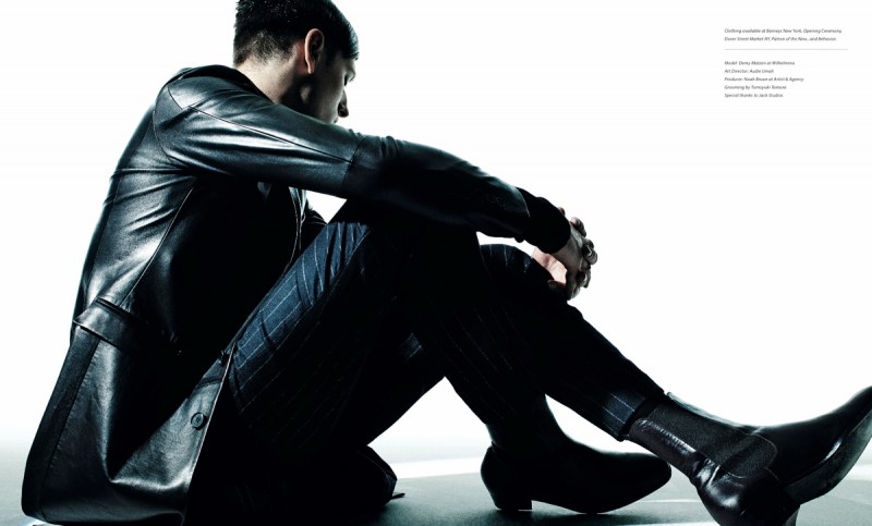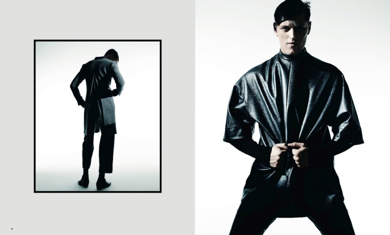 Between Climates–Photographed by Rasmus Mogensen for the most recent issue of Essential Homme, model Demy Matzen is outfitted in choice pieces from the fall 2014 collection of Juun.J. From sharp leather pieces and outerwear with structured collars to voluminous pullovers, Demy gets a modern edge with the help of stylist Micah Johnson.