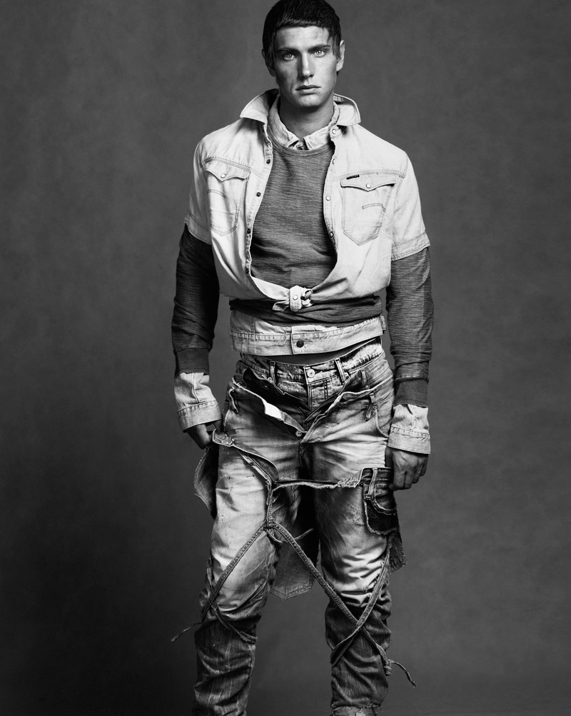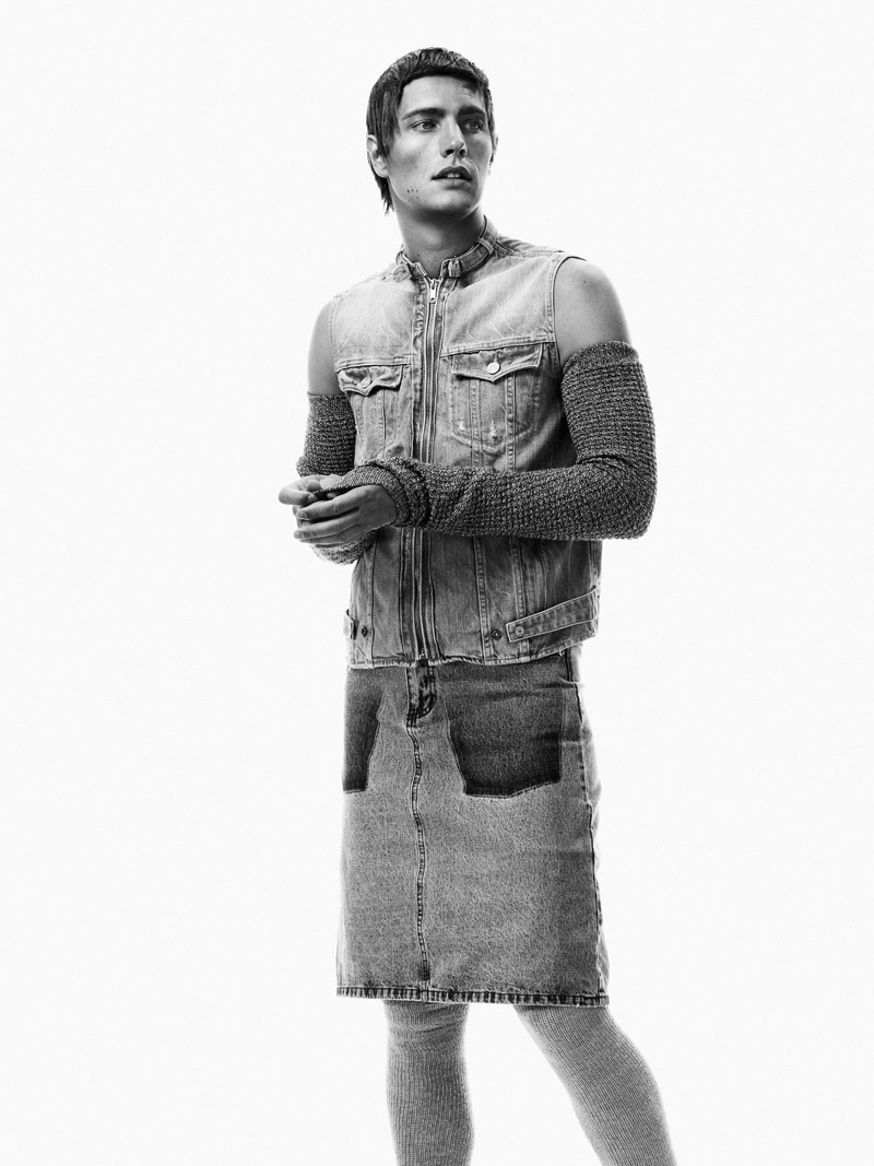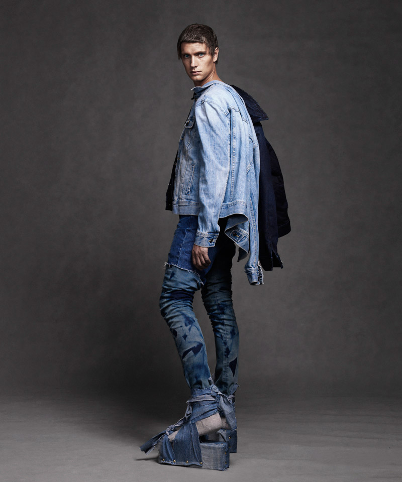Layered Denim–Australian magazine Manuscript has denim on the mind as they enlist local model Andrew Smith for its latest issue. Layered in head to toe denim, Andrew rocks an unusual do, hitting quirky poses for the lens of photographer Georges Antoni. Styled by Jolyon Mason, Andrew sports denim jackets, jeans, shirts and more, representing the latest from labels that include Levi’s and Diesel.
