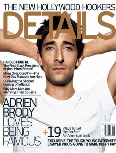 Adrien Brody covers the August 2004 issue of Details magazine.