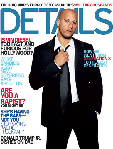 Vin Diesel covers the April 2006 issue of Details magazine.