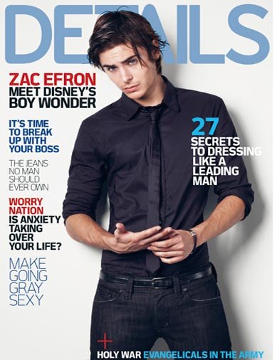 Zac Efron covers the January/February 2008 issue of Details magazine.
