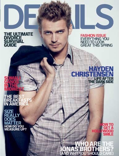 Hayden Christiansen covers the March 2008 issue of Details magazine.