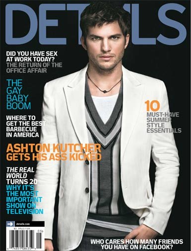 Ashton Kutcher covers the May 2008 issue of Details magazine.