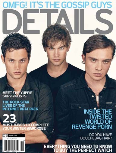 Gossip Girl stars Penn Badgley, Chace Crawford and Ed Westwick cover the November 2008 issue of Details magazine.