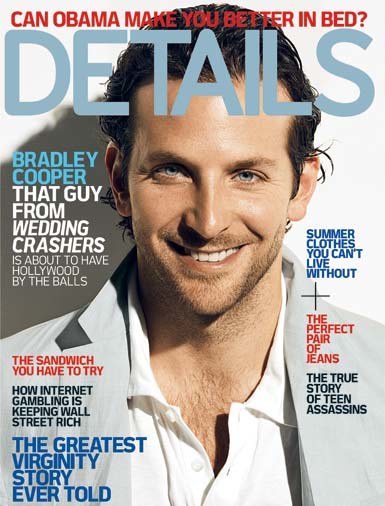 Bradley Cooper covers the June/July 2009 issue of Details magazine.