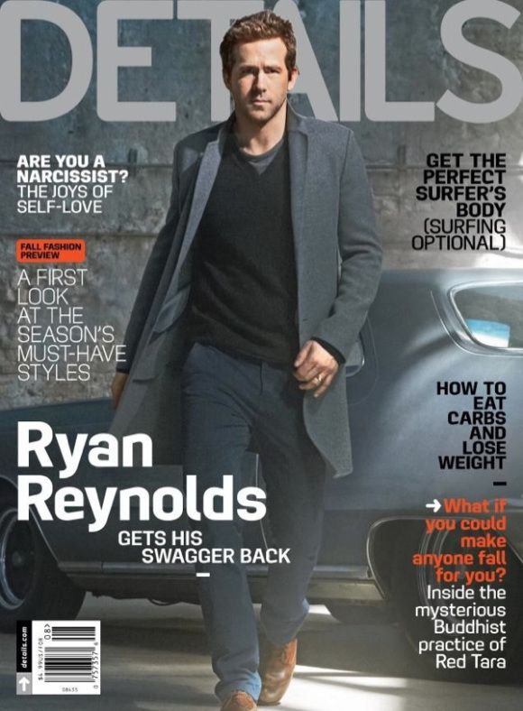 Ryan Reynolds covers the August 2013 issue of Details magazine.