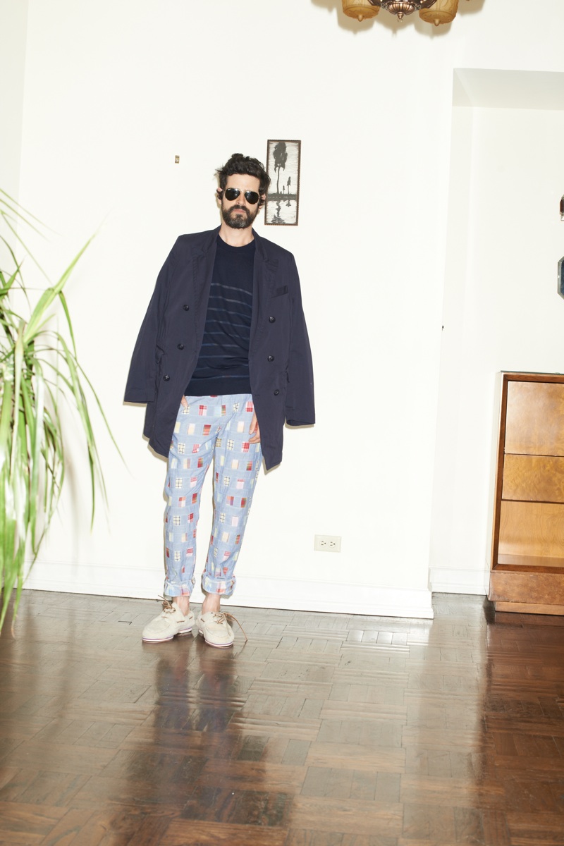 Live Like a Rockstar–Band of Outsiders designer Scott Sternberg enlisted musician and artist Devendra Banhart for the presentation and lookbook of his spring/summer 2014 collection. Inspired by a young Mick Jagger, Sternberg approached his latest collection imagining what it would be like to live in a hotel and out of a suitcase. Staging his day-long Big Brother-like show at the Chateau Marmont in Hollywood, Sternberg unveiled a lineup that executed the Band of Outsiders mainstays with a continuous timeline serving as a guide.