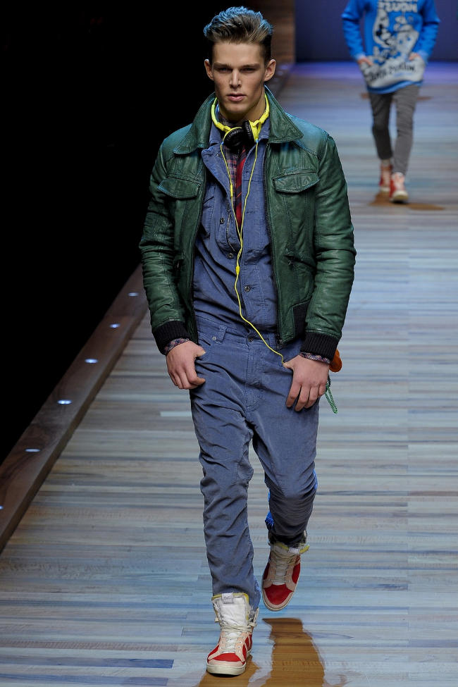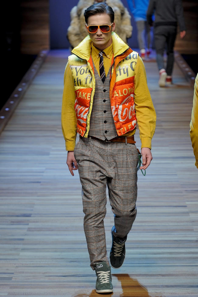 D&G breaks from the pack, bypassing the 70’s and looking to the 80’s for the inspiration of their candy-coated fall collection. Pure fun, the latest range excites the senses with a wide array of vibrant color and tops emblazoned with Mickey Mouse and the iconic Coca-Cola logo. Stealing a scene from Say Anything, wool coats make the perfect companion to denim and easy layered top sets. Whether comfortable in a blazer, oversized fur coat or smart cardigan, D&G delivers the right mood and style for the upcoming fall season.
