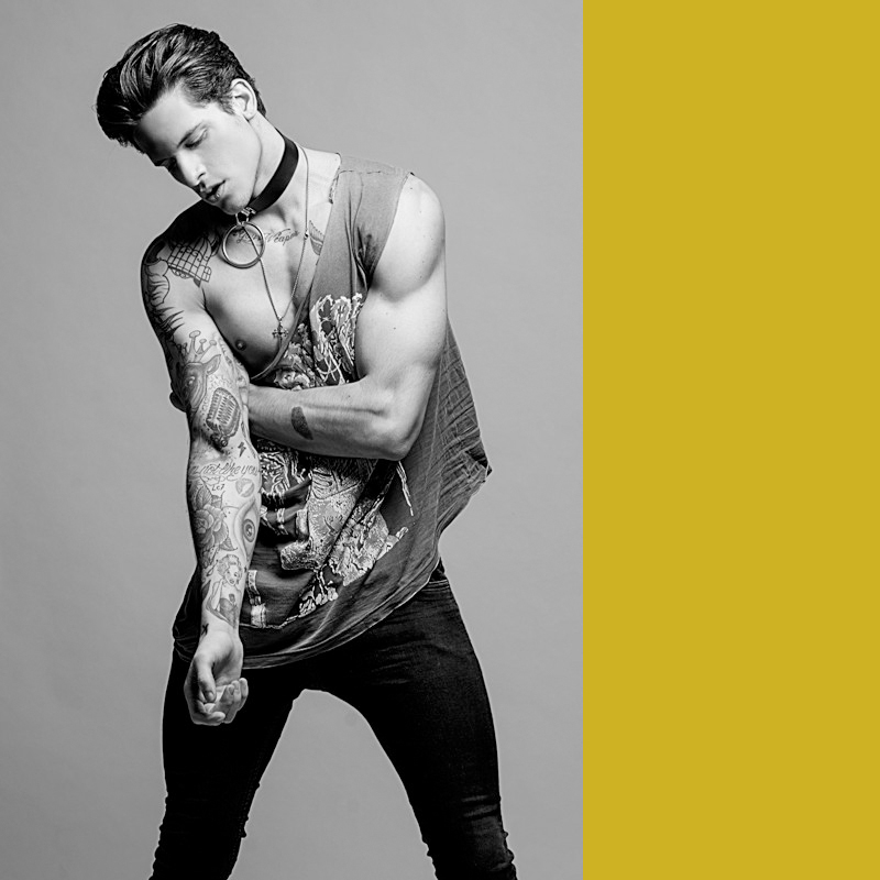 Diego wears vintage t-shirt stylist’s own, vintage shirt, jeans H&M and choker Petrus Brand.