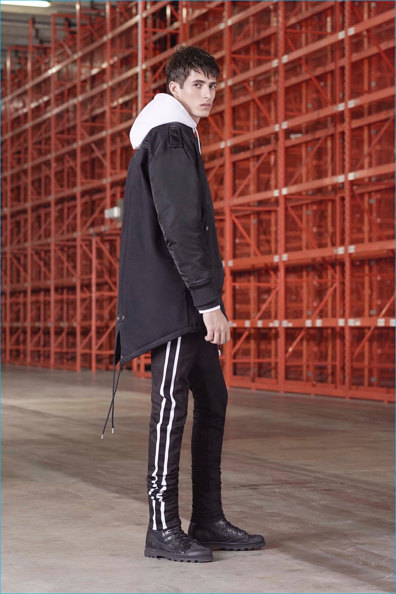 Diesel Black Gold tackles a sporty style motif for its pre-fall 2017 collection. Approaching the season, the brand’s creative director, Andreas Melbostad delivers a utilitarian approach to sportswear. Model Oscar Kindelan stars in the new collection lookbook, connecting with photographer, Kevin Sinclair.
