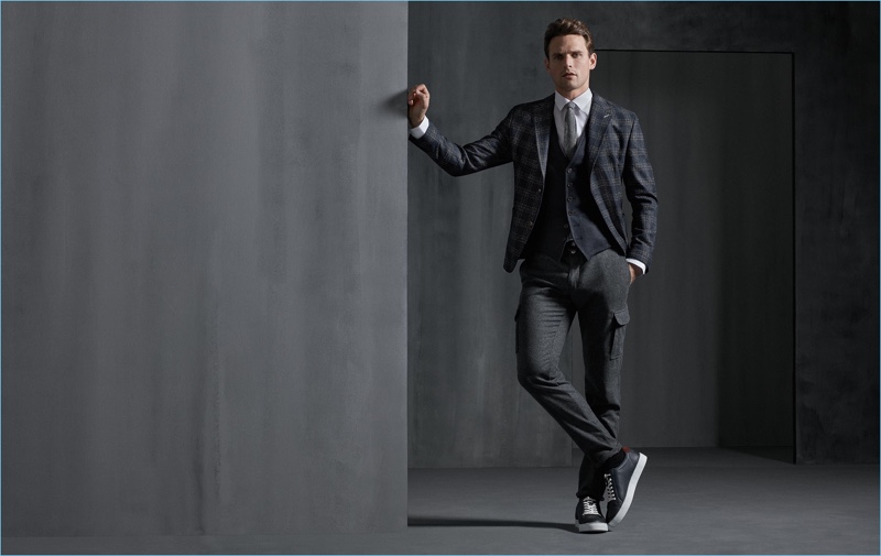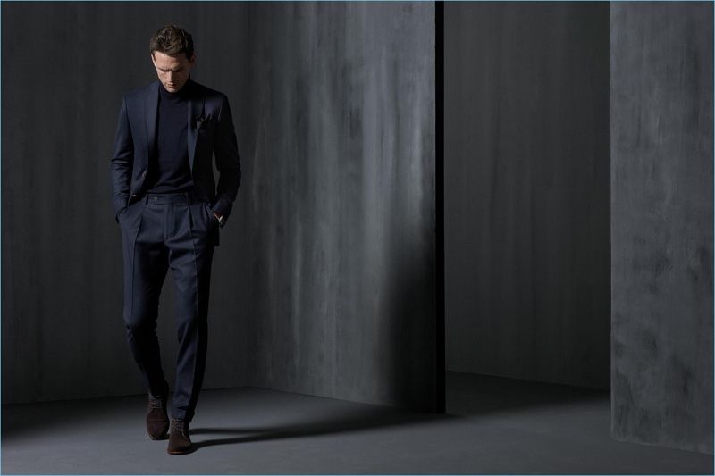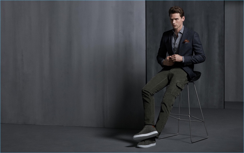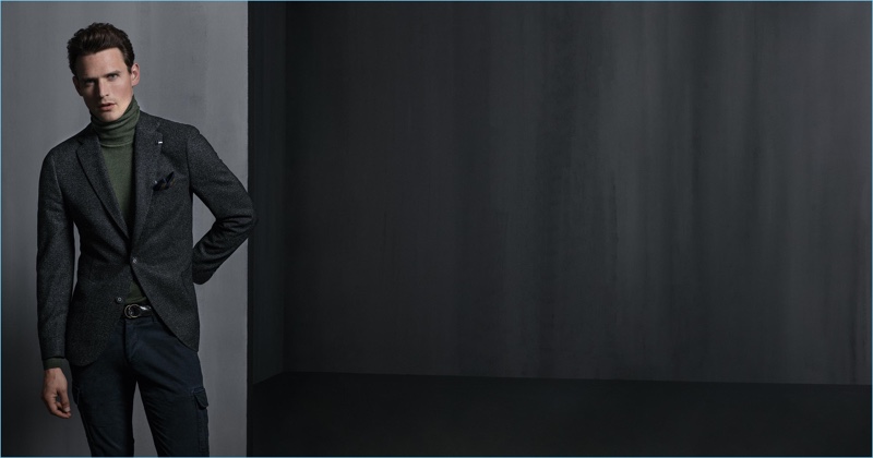 Digel once again looks to Guy Robinson as the face of the season. The British model reunites with the brand for its fall-winter 2018 campaign. Guy embraces dapper numbers as he showcases Digel’s sophisticated offering. Dashing single-breasted and double-breasted numbers contribute to a strong suiting lineup. Meanwhile, Guy also models more casual pieces. Key sportswear for the season includes cargo pants, pullovers, and down outerwear.
