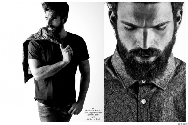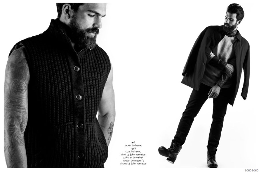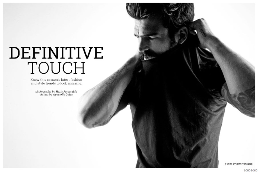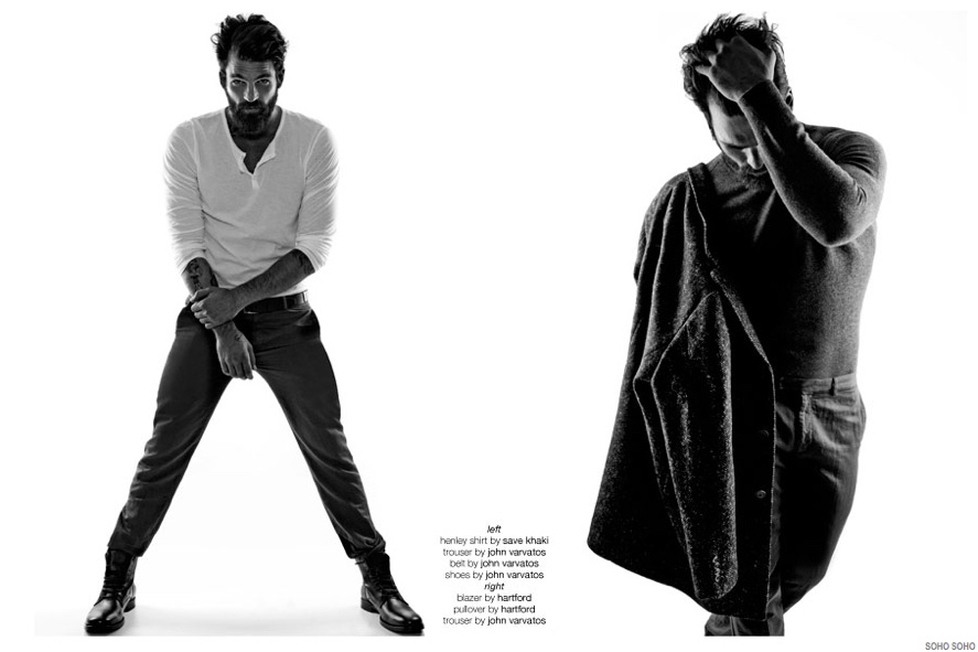 Rounding up current fashions from retailer Soho Soho, photographer Haris Farsarakis focuses his attention on model Dimitris Alexandrou. Hitting the studio for black & white images, Dimitris connects with stylist Apostolis Gofas for a contemporary lesson in casual style. On the clothing agenda are pieces from John Varvatos, Rag & Bone, Ralph Lauren Denim & Supply plus more.