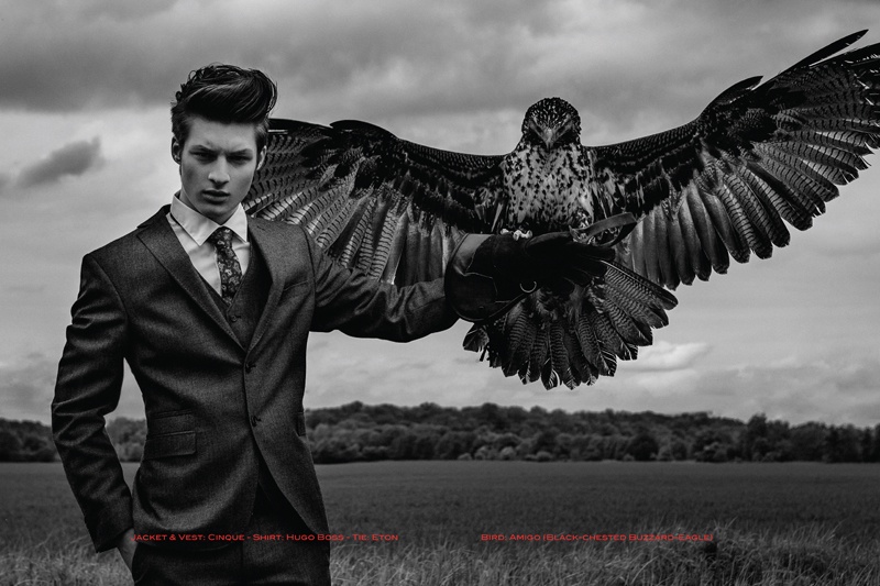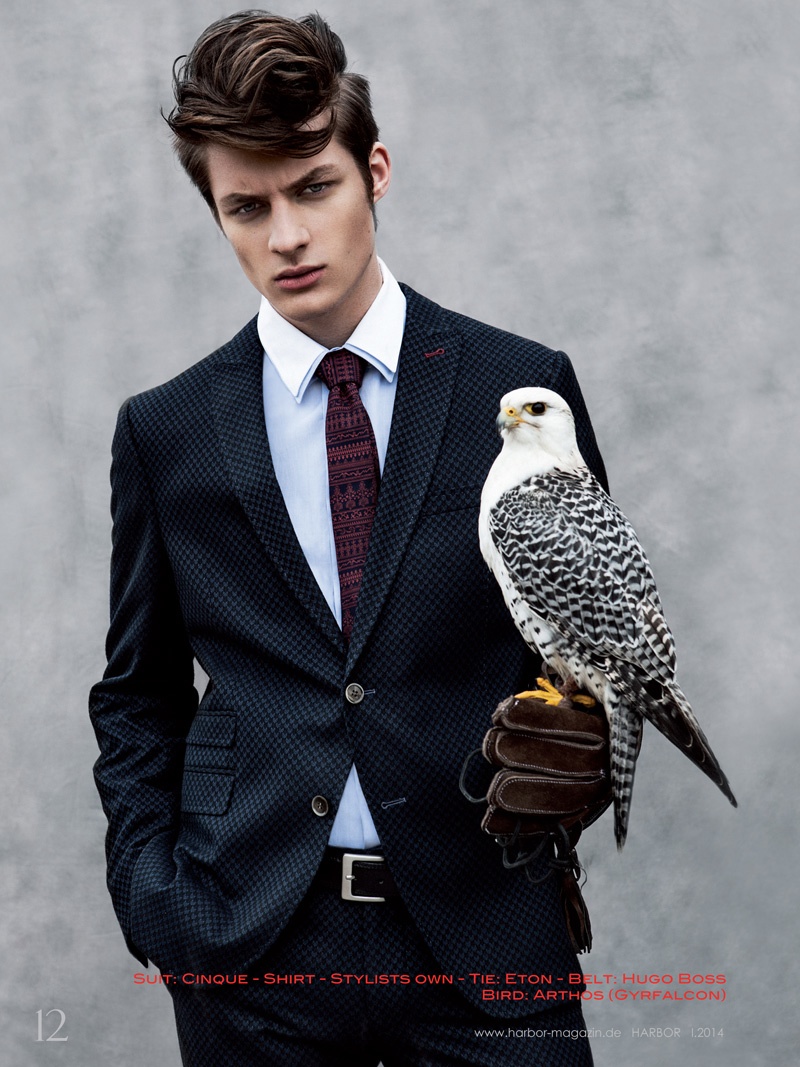 Fly High–Starring in a stunning new story for German magazine Harbor, Dopamin model Dino Busch is photographed by Marie Schmidt. Posing with magnificent owls, Dino takes his style to the next level with dapper ensembles pulled together by stylist Marcel Graul (Top Agence). / Grooming by Ellen Van Exter (Nina Klein). Creative direction by Carsten Drochner (Dopamin). Birds from Falconry Pierre Schmidt.