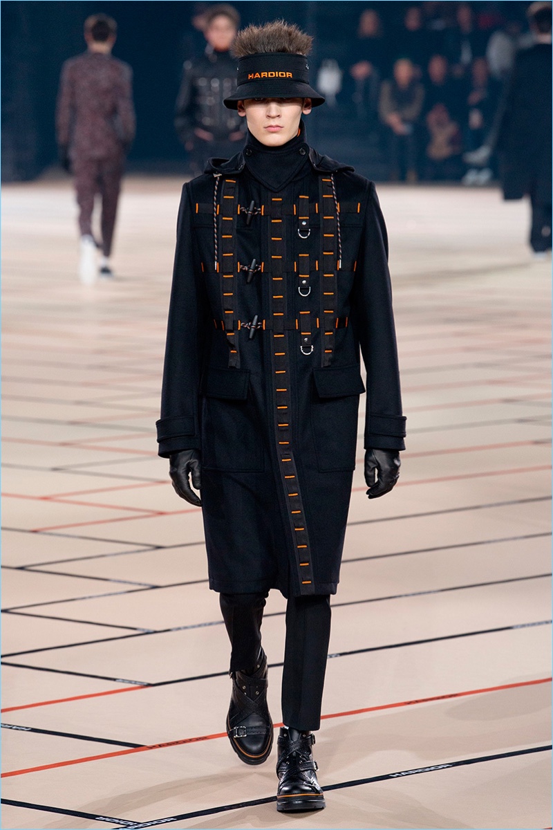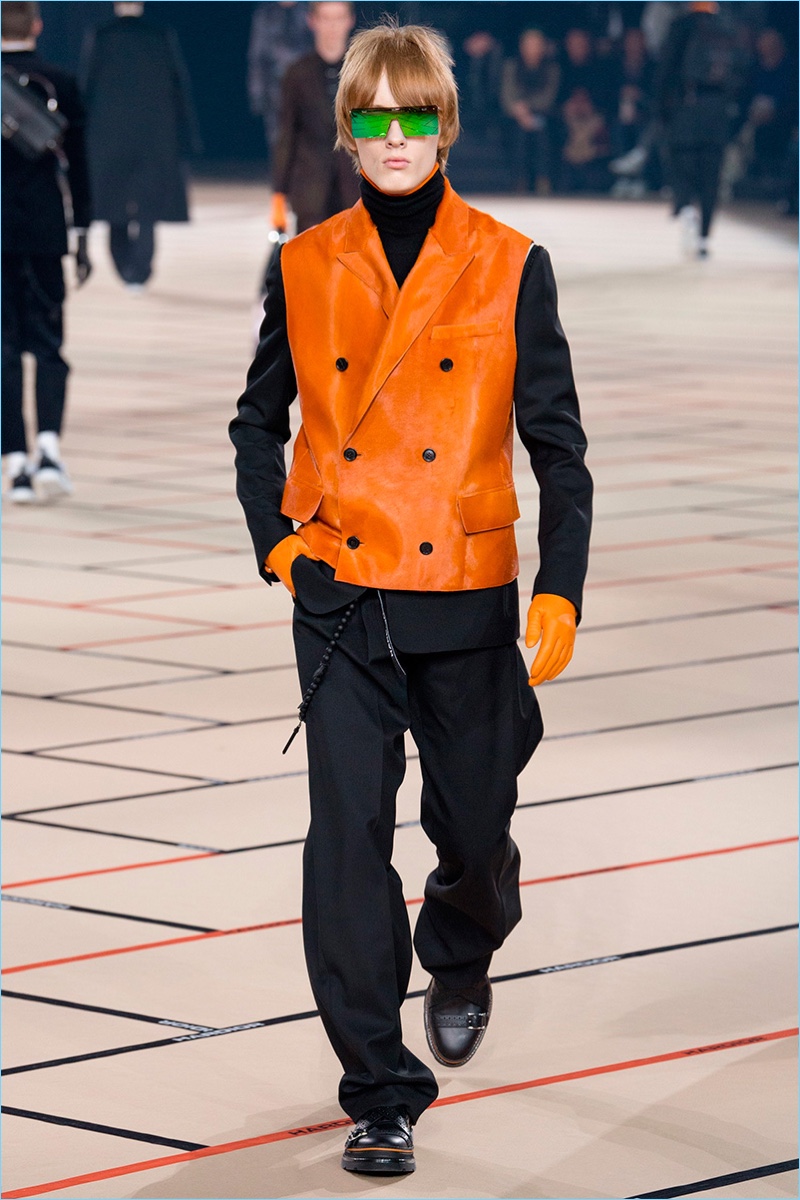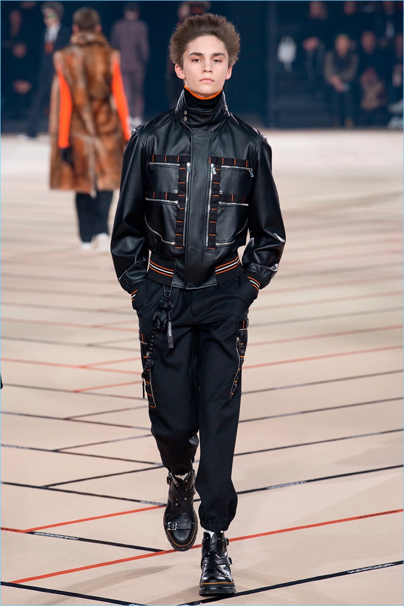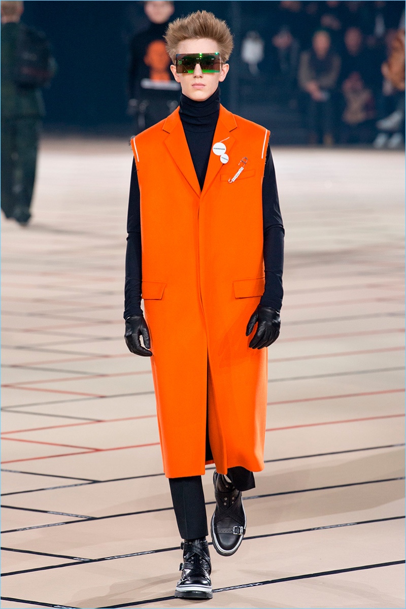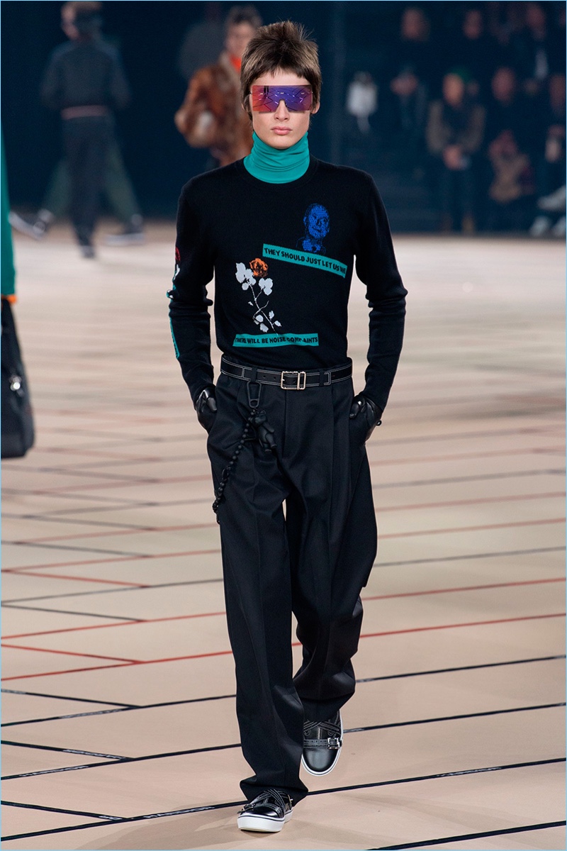 Belgian designer Kris Van Assche continues to play a youthful hand at Dior Homme with the brand’s fall-winter 2017 collection. The new range captures a tailored take on teenage days and rave parties. Here, Van Assche employs a lineup of black fashions with sporadic pops of color.