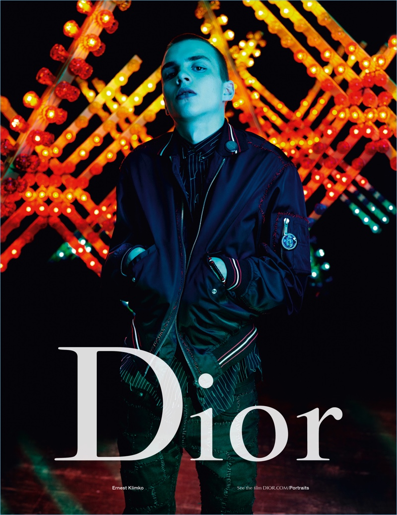 Photographed by Willy Vanderperre, the advertisement also features model Ernest Klimko. Ernest and Dior’s celebrity faces link up with stylist Olivier Rizzo for the occasion. Exploring an attention to details, Rizzo pulls together a selection of embellished blazers and jackets, designed by Dior Homme creative director, Kris Van Assche.