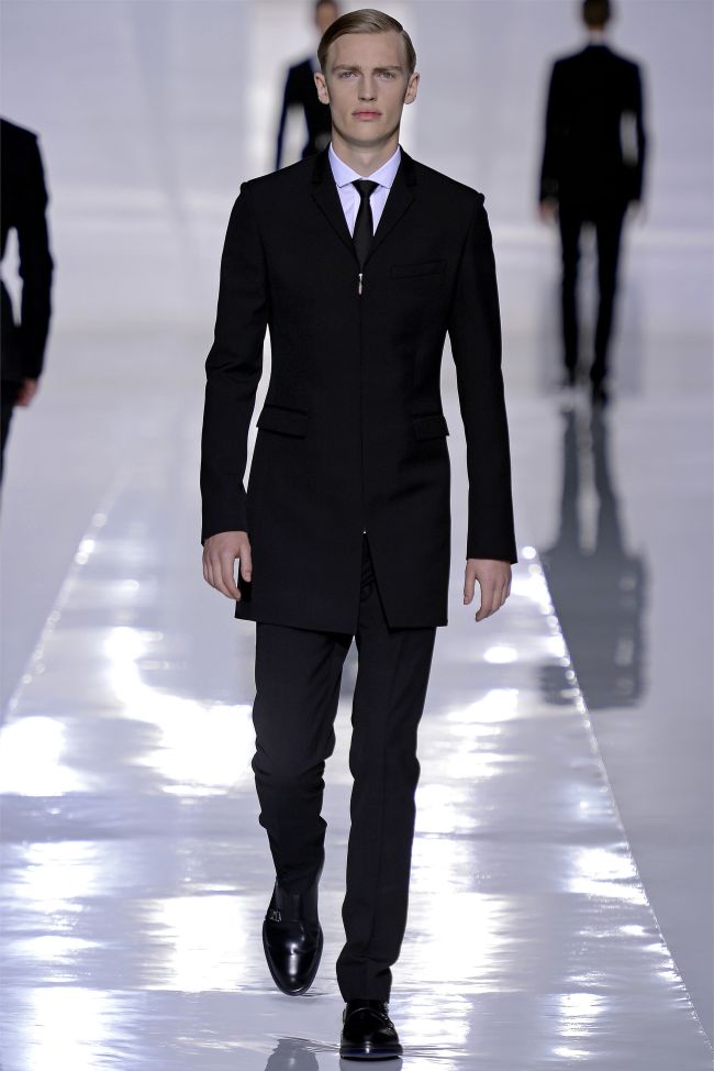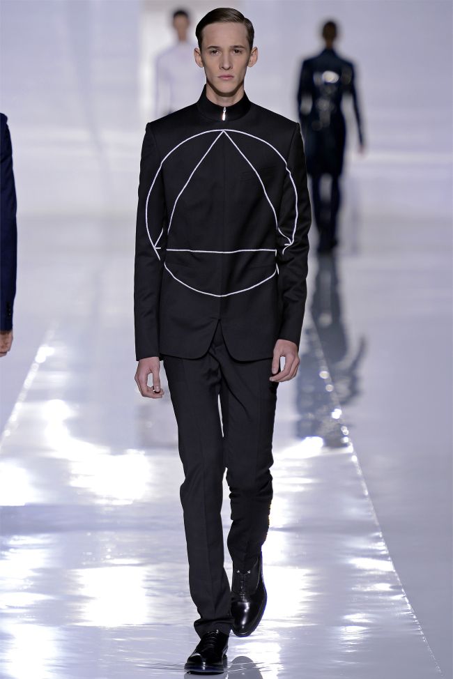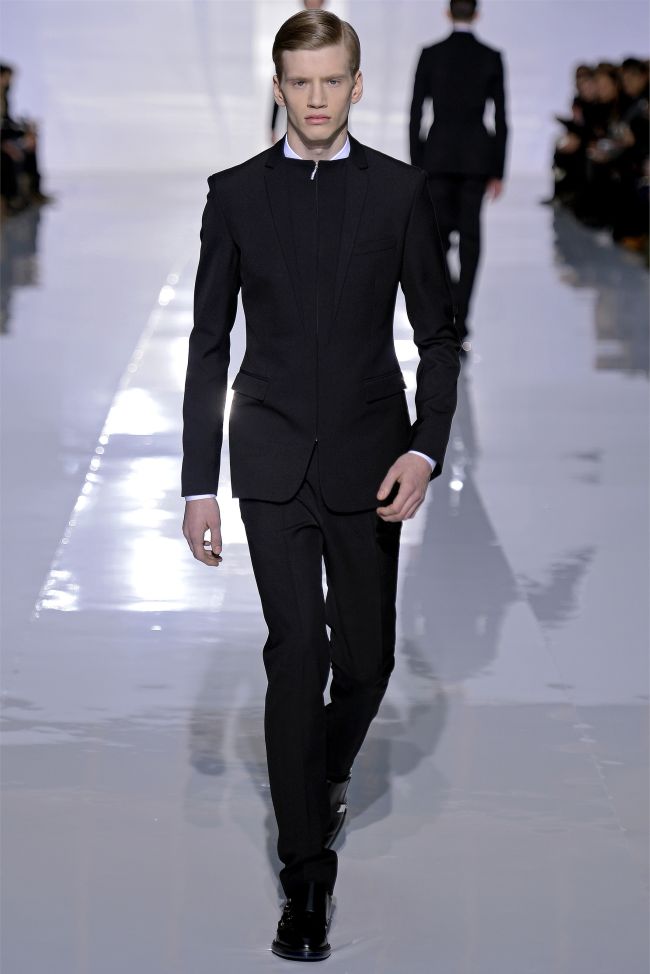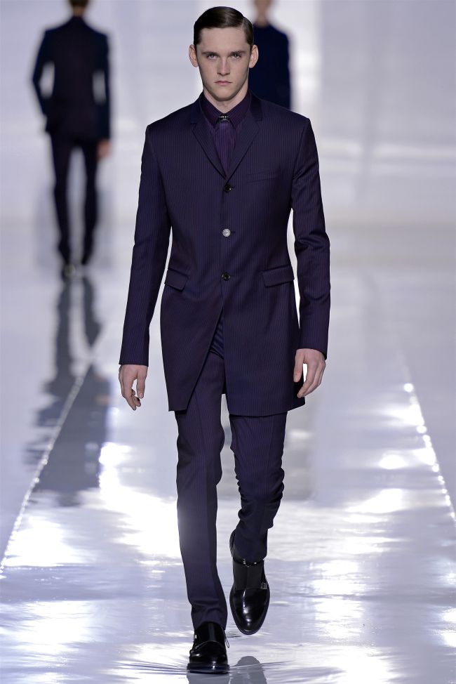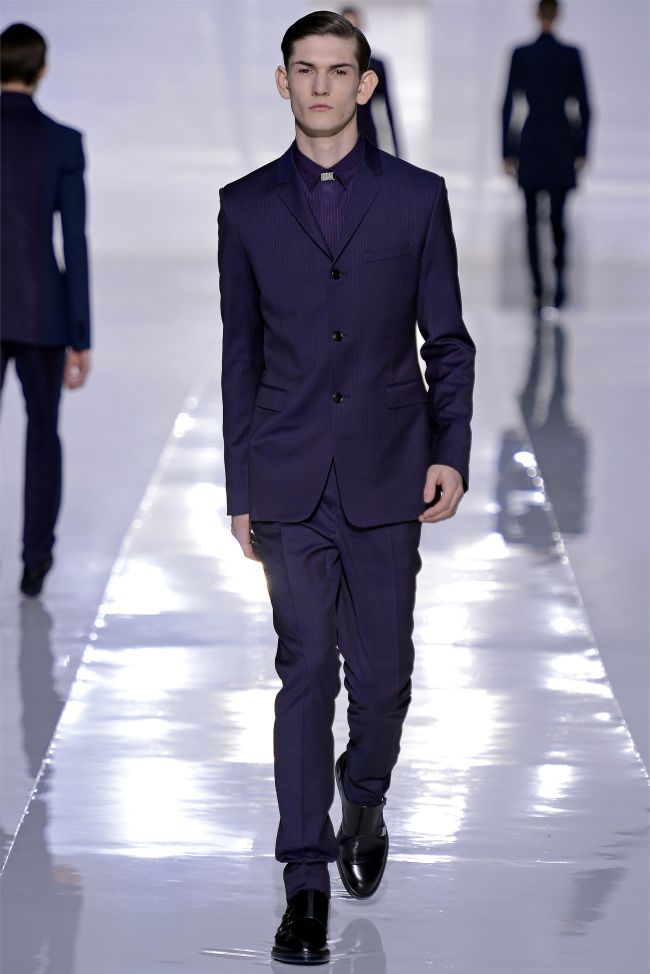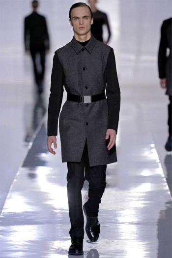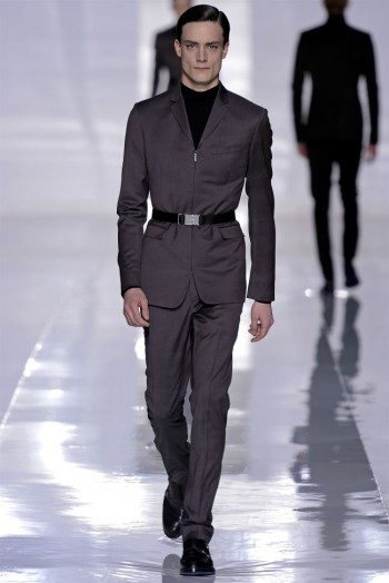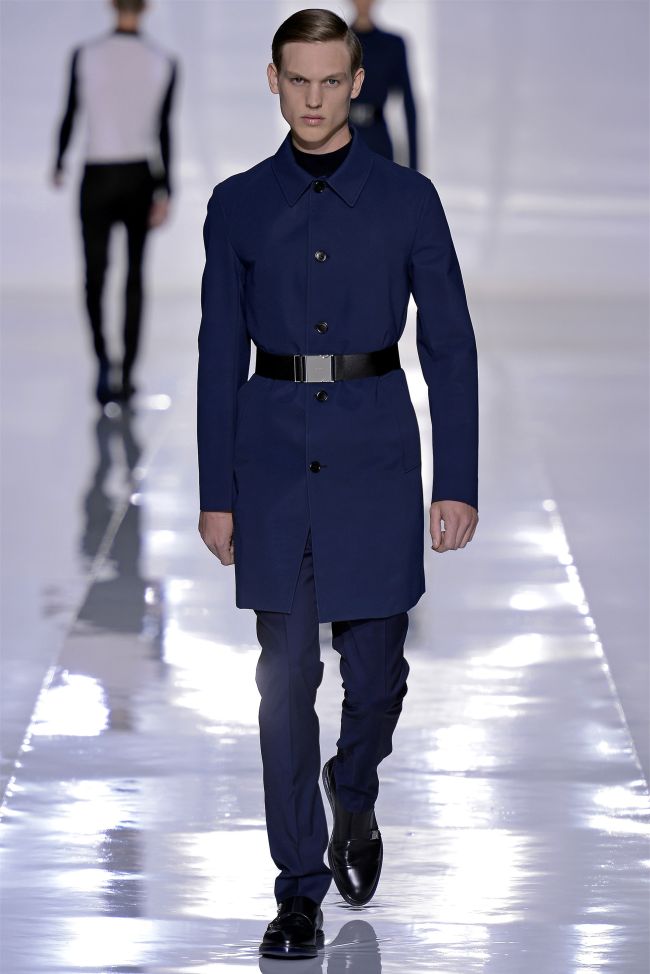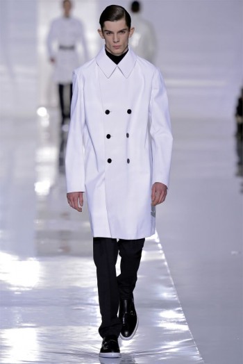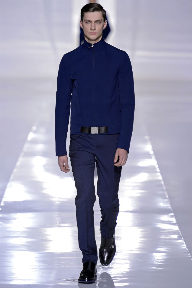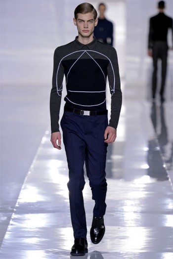 Modern Dior–From the militaristic motif to a refined take on futuristic wear, Dior Homme creative director Kris Van Assche skillfully blends fantastic themes with a timeless sense of tailoring. For the fall/winter 2013 season, the man of Dior Homme could easily be dreamed up as a striking space lieutenant. Armed with clean lines, zippered blazers, foreign prints, clasped belts and a knack for color blocking, the season’s hero embraces a sleek aesthetic with great character.