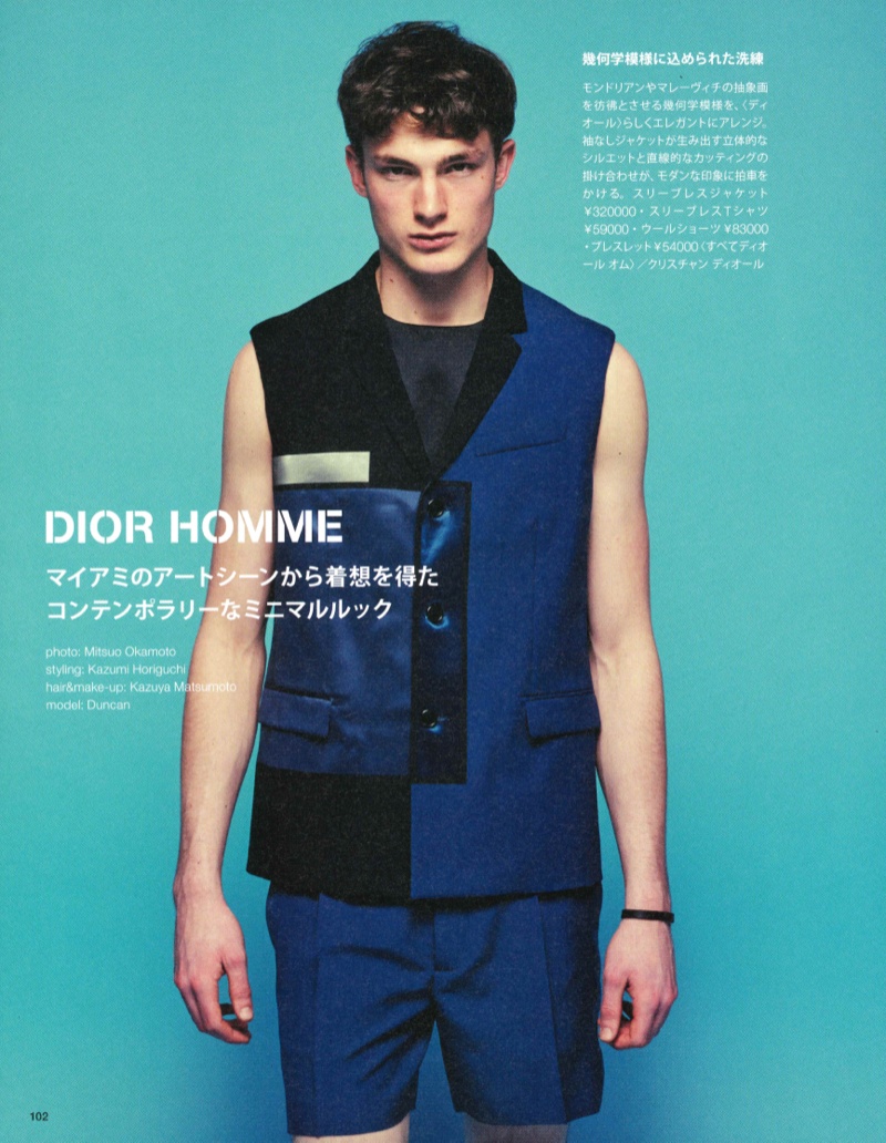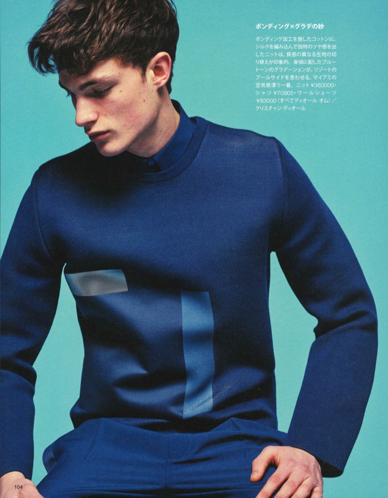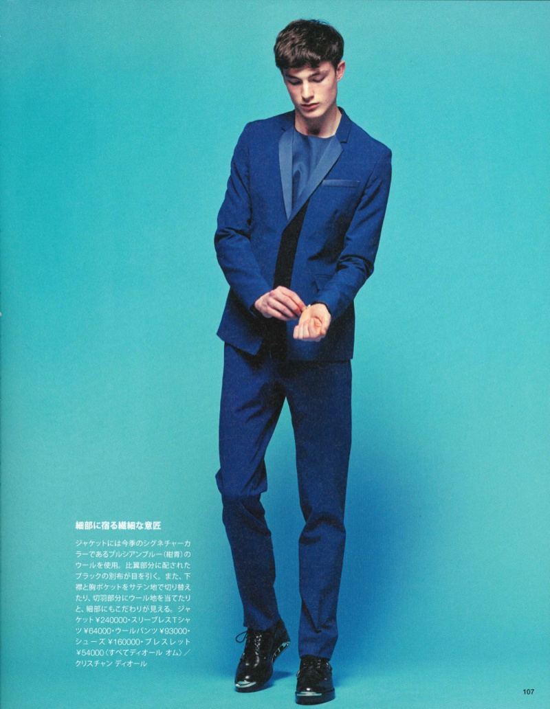 Dior Goes HUgE–Featured in the spotlight once more, Kris Van Assche’s spring 2014 collection for Dior Homme graces the pages of Japanese magazine HUgE. Starring in the spread is none other than Fusion model Duncan Proctor, who is photographed by Mitsuo Okamoto. Embracing a predominate focus on one of Van Assche’s favorite colors–navy, Duncan is dressed in the designer’s modern suiting and styled by Kazumi Horiguchi. / Grooming by Kazuya Matsumoto.