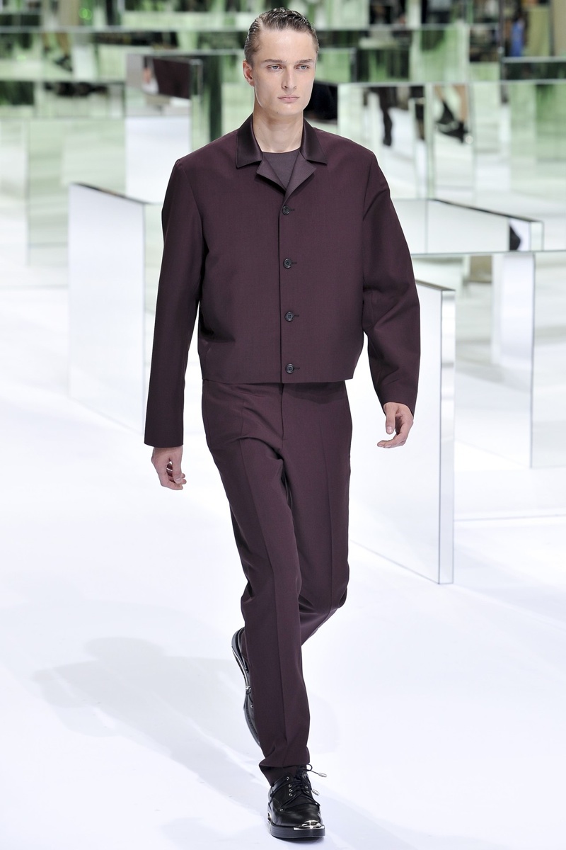 Maximal Baroque–After a somber fall/winter 2013 collection of militaristic style references, Dior Homme creative director Kris Van Assche wanted a lighter course of action for spring/summer 2014. Blurring the lines between formal and casual, Van Assche “wanted to explore the almost contradictory idea of ‘minimal baroque’…” The Belgian designer elaborates, “I wanted an idea of rigour, yet without so many restrictions attached to it. I wanted a lot of contrast and choice; different propositions in colour and silhouette, something more unconventional and individual at times. Something still rigorous, yet light and fun – choice, chance and lightness.” Taking the level of contrasts to heart, the collection’s core pieces included lean-cut suiting shorts. Paired with sharp blazers, often sleeveless, tailored shorts mix business and play. Meanwhile, varying blocks of color in Van Assche’s customary blue address the baroque theme, taking a relatively upbeat path for the man of Dior Homme.