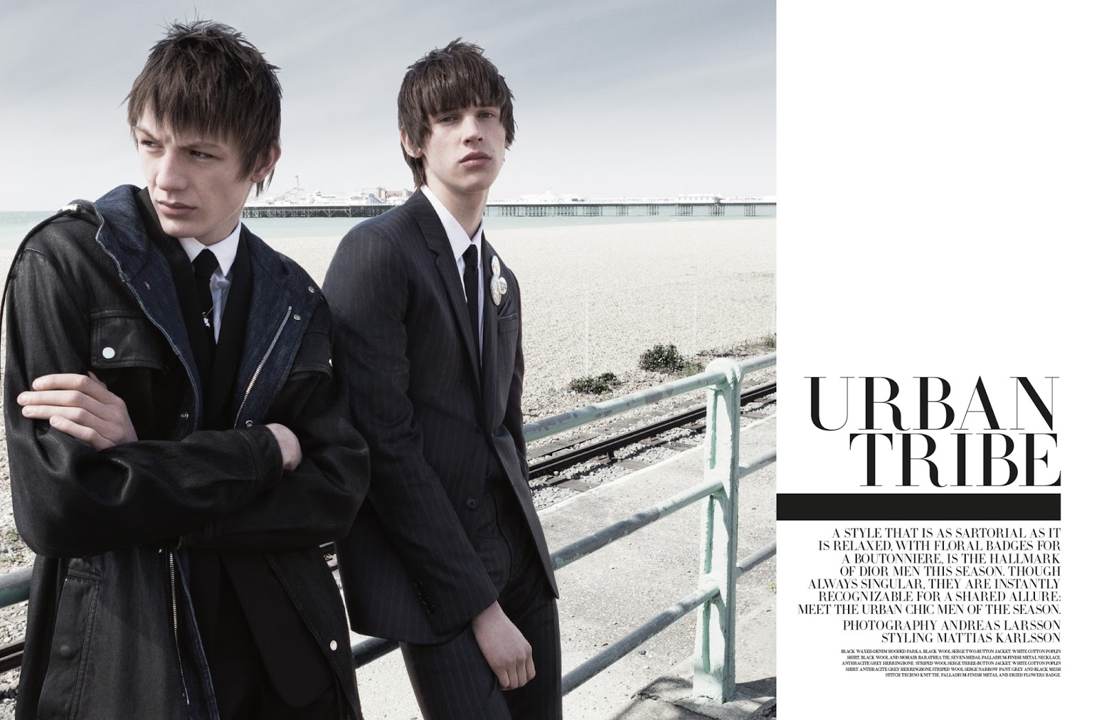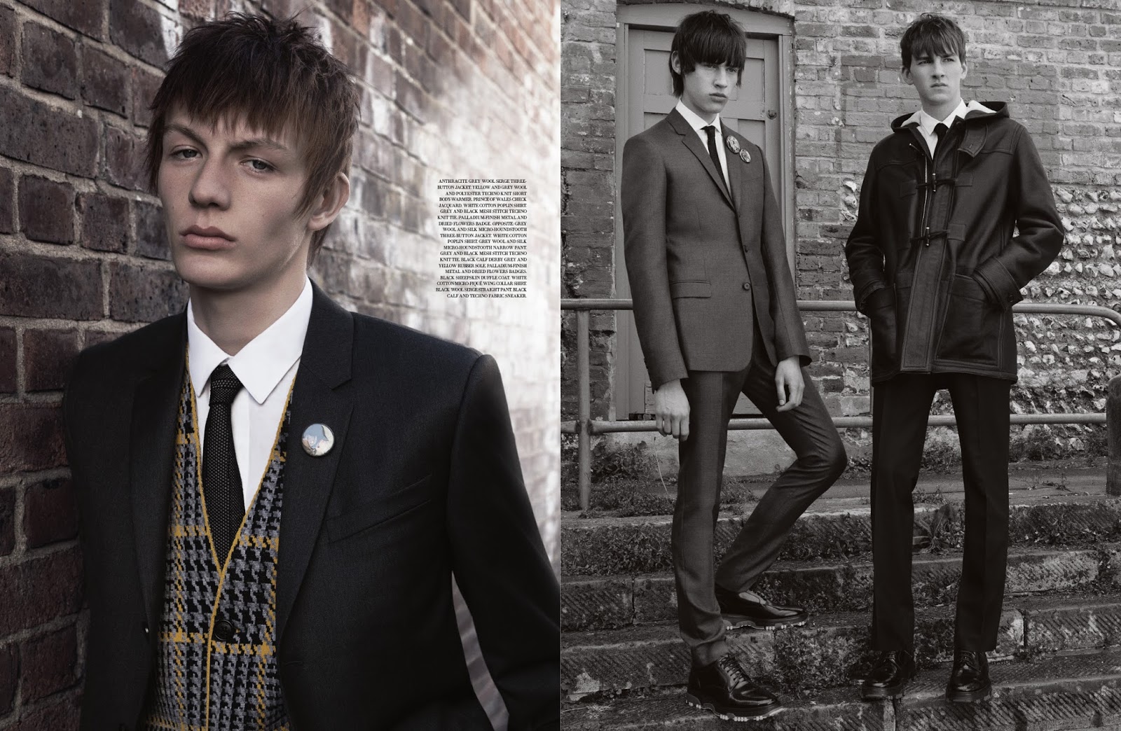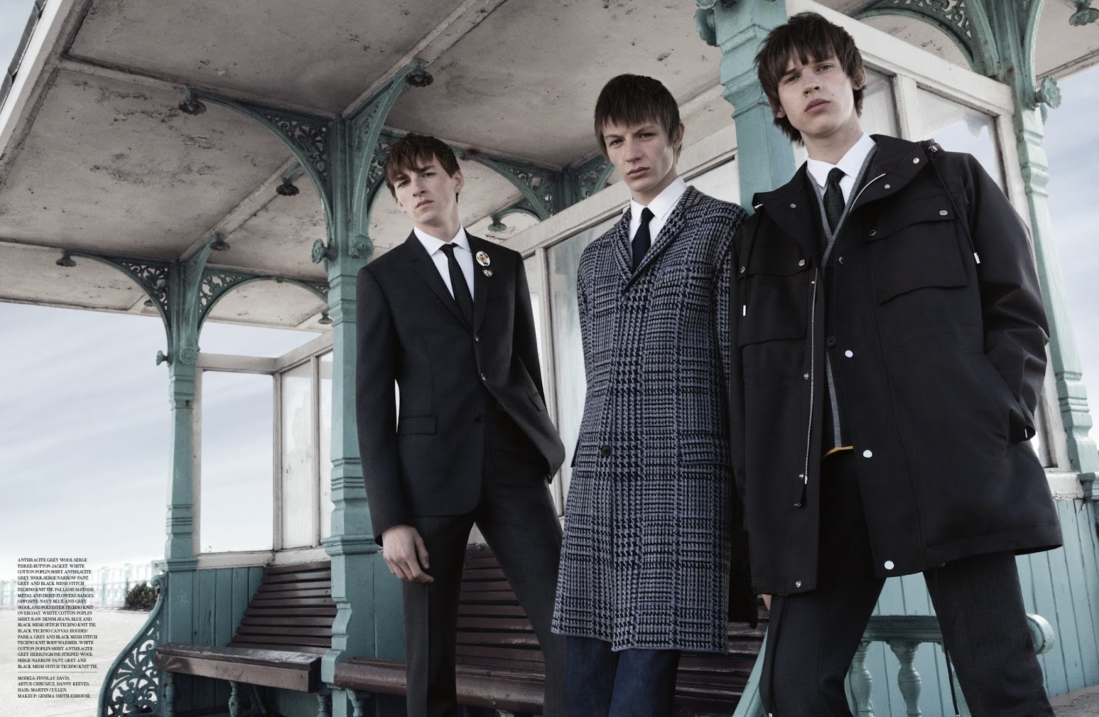 Dior magazine’s fall-winter 2015 issue highlights Dior Homme creative director Kris Van Assche’s current collection. Spotlighting Van Assche’s sartorial flair, models Artur Chruszcz, Danny Keeves and Finnlay Davis connect with photographer Andreas Larsson. Embracing a 1960s-mod inspired aesthetic, the model trio rock men’s fringe haircuts. Styled by Mattias Karlsson, the boys show off Van Assche’s affinity for sharp tailoring with a comfortable attitude.
