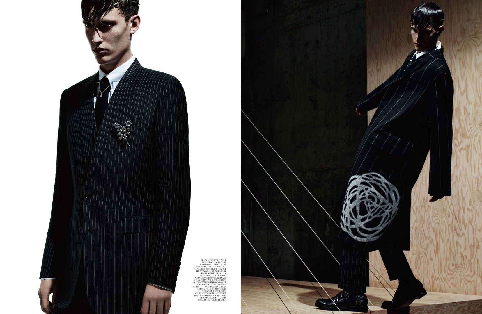 On the Edge-Photographed by Greg Harris, model Dzhovani Gospodinov appears in the most recent issue of Dior magazine. Styled by Tony Irvine, Dzhovani is fortunate enough to be one of the first models photographed in Dior Homme’s fall/winter 2014 collection, designed by men’s creative director Kris Van Assche. The new collection charms with strong lines, classic pinstripes and whimsical polka dots.