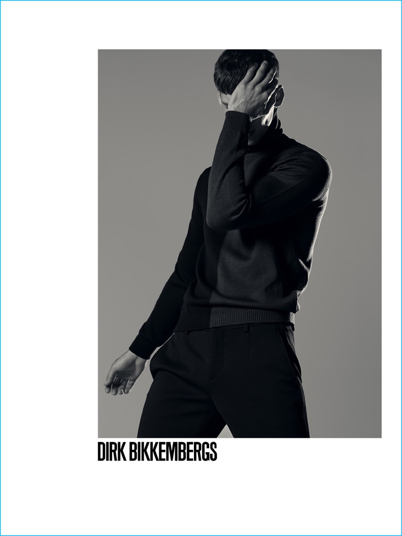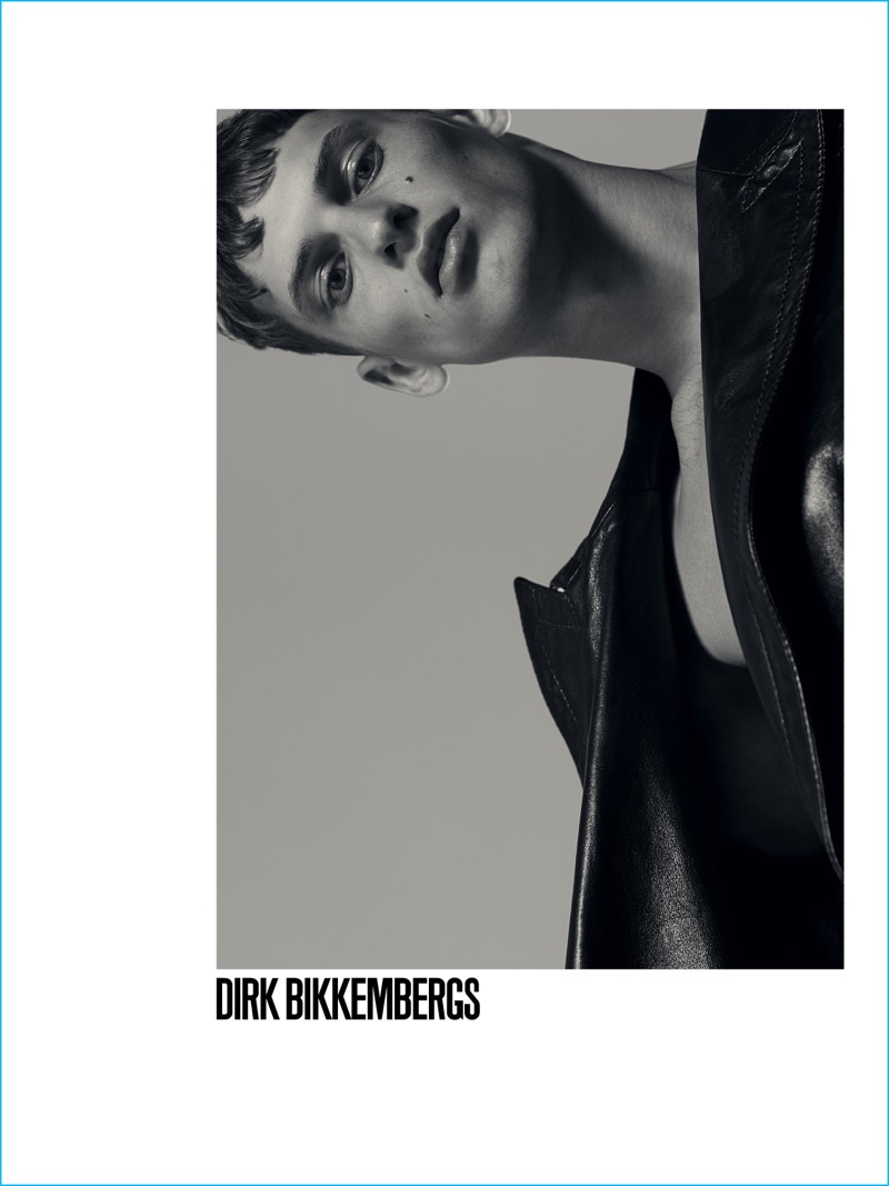 David Trulik stuns as the new face of Dirk Bikkembergs. The fashion brand taps the model for its fall-winter 2016 campaign. Embracing a clean black & white aesthetic for the occasion, Dirk Bikkembergs collaborates with photographer Mel Bles. Bringing attention to Bikkemberg’s essentials, art director Lele del Fabbro and creative director Lee Wood join forces. Delivering elegant lines, David sports leather outerwear, relaxed knitwear, and Dirk Bikkembergs’ classic underwear briefs.