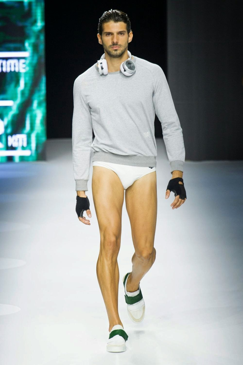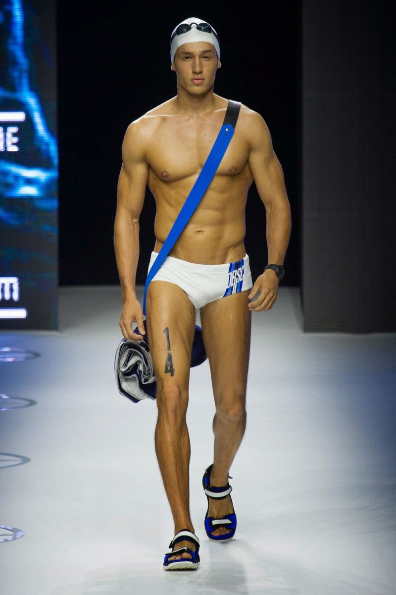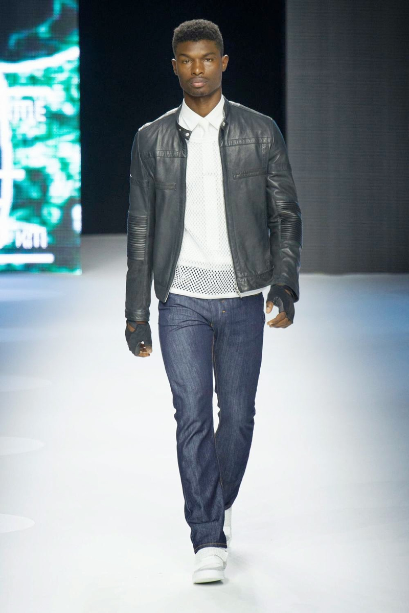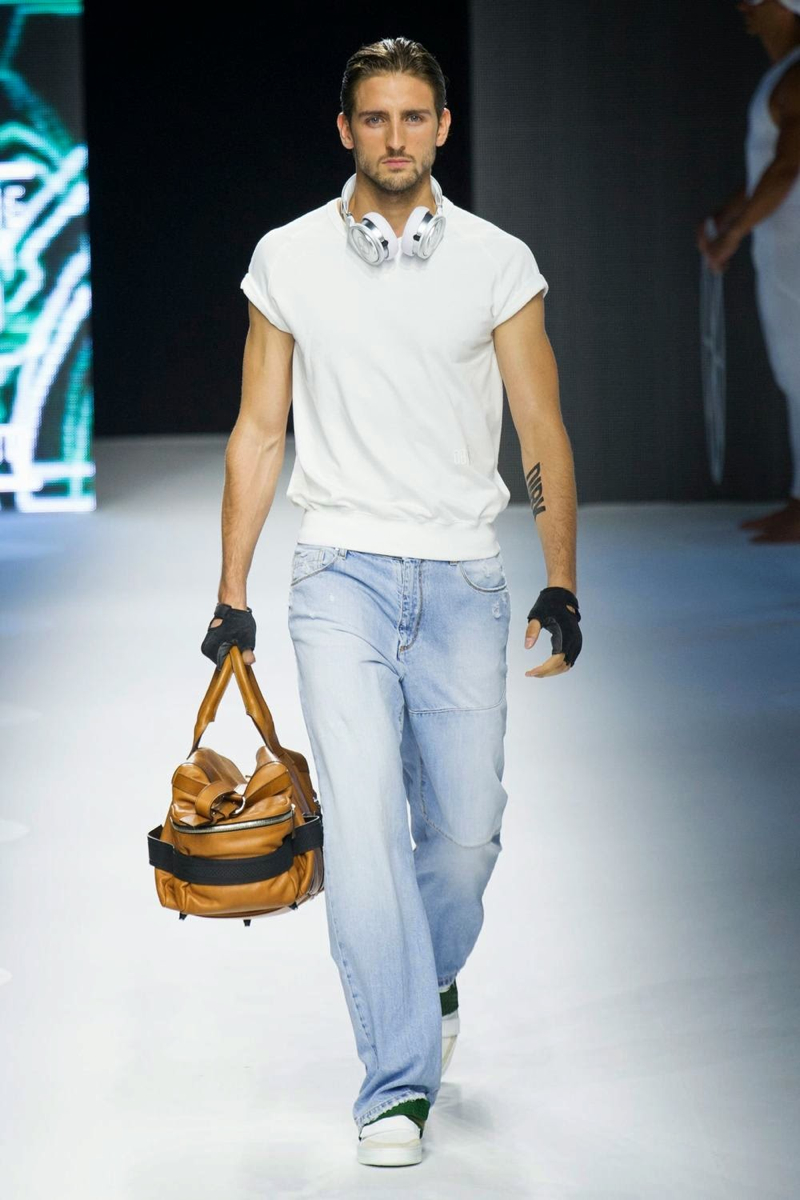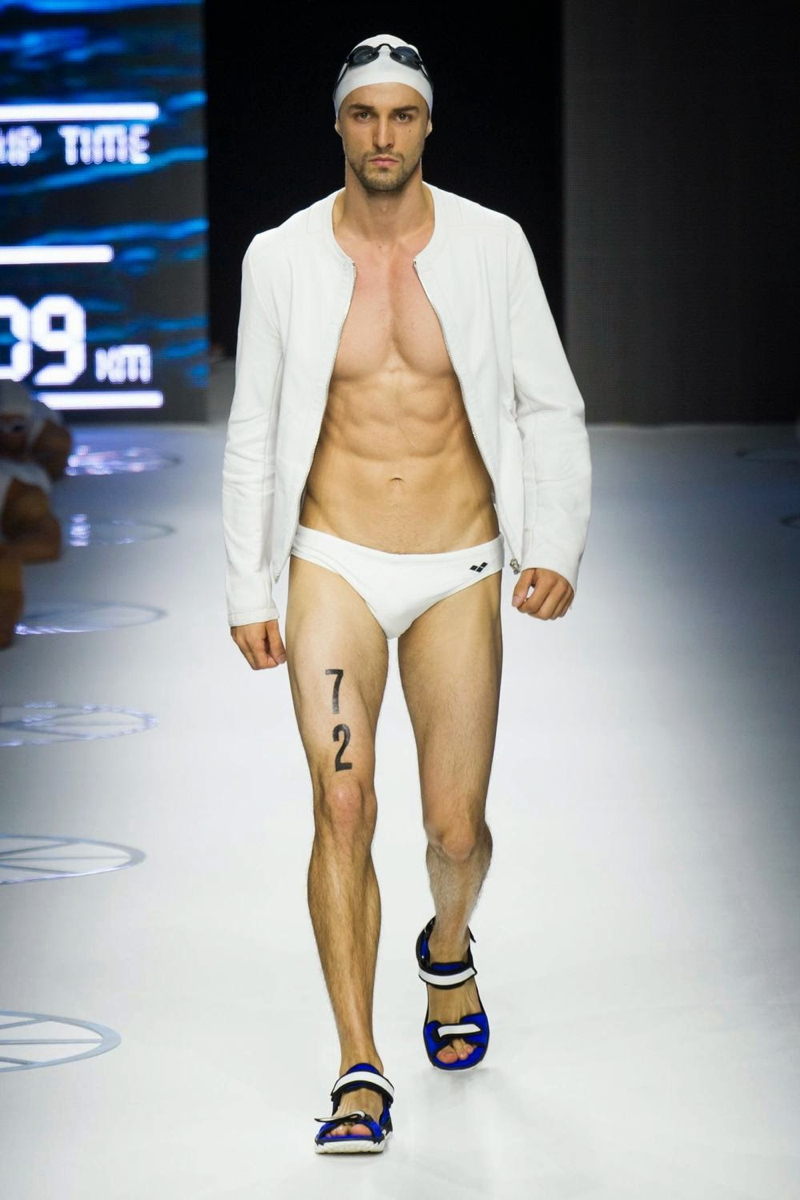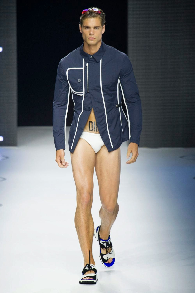 Dirk Bikkembergs Spring/Summer 2015–A fashion label that has always been about the athletic man, Dirk Bikkembergs fits right in this season. For spring/summer 2015, the swimmer and his long torso were the stars of the show. Embracing aquatic blues, leggings, open shirts and sporty blazers were right at home. Take a detour with cycling and the shorts were tight and tops relaxed. Stopping off in Shanghai, Dirk Bikkembergs’ collection got playful with biker’s jackets, mesh tops and more mixing in with the sporty essentials already established. Altogether, the collection hit a relevant note for the athlete, marrying style and function.
