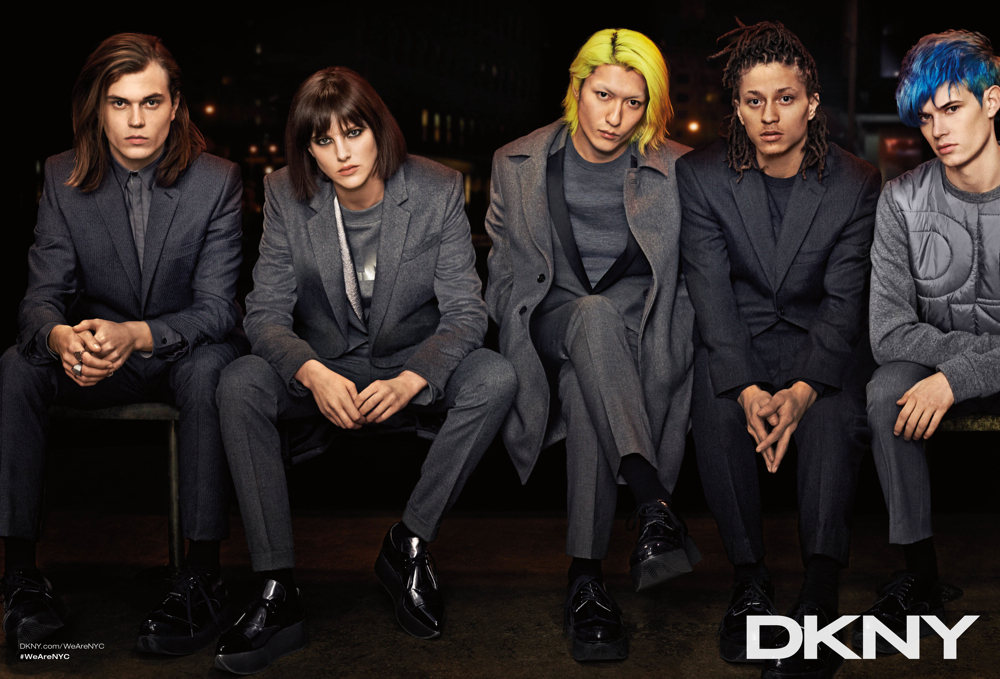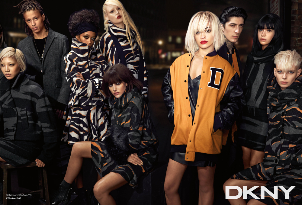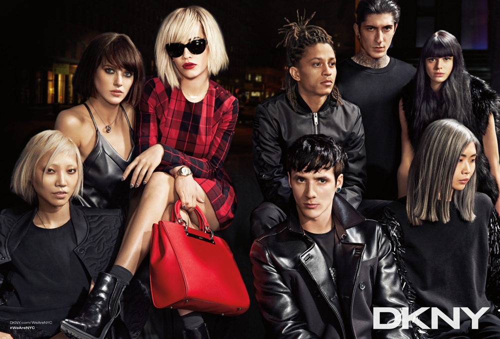 DKNY Fall/Winter 2014–Interestingly enough, DKNY looks to an eclectic gathering of models, actors and artists, most not based in the Big Apple to represent the energy of a ‘New New York’. Photographed in youthful styles, meant to reinforce the individual, Rita Ora, A$AP ILLZ, Eliza Cummings, Soo Joo Park, Dorith Mous, Daniel Bamdad, Benjamin Jarvis, Melissa Burns, Masha Korchagina, Brandee Brown, Mike Bailey Gates, Akito Nara, John Tuite, Carlos Santolalla and May Hong come together for portraits styled by Alistair McKimm. The lot were photographed by Lachlan Bailey in New York City at Highline Stages. / Makeup by Yadim. Hair by James Pecis and Ursula for Rita Ora.
